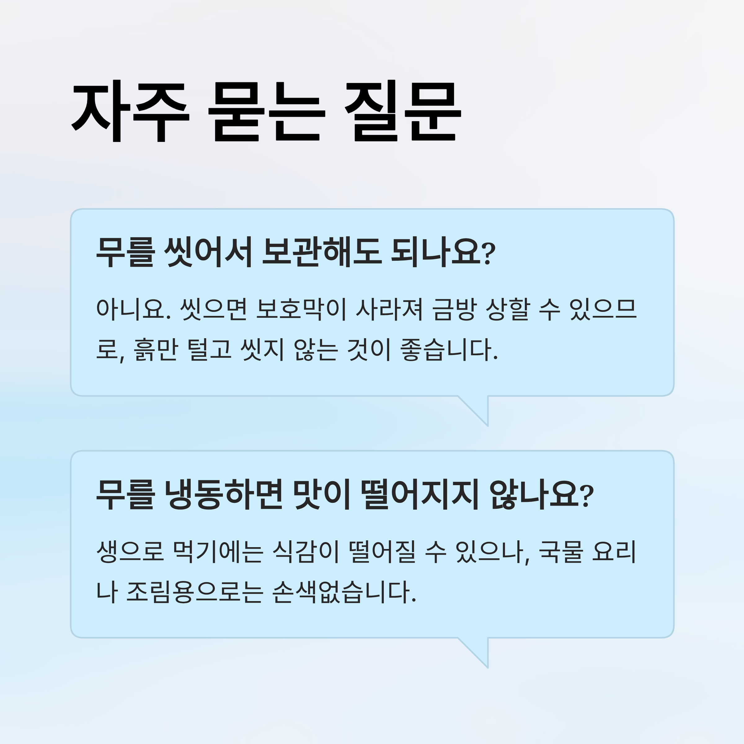 Q. 무를 씻어서 보관해도 되나요?