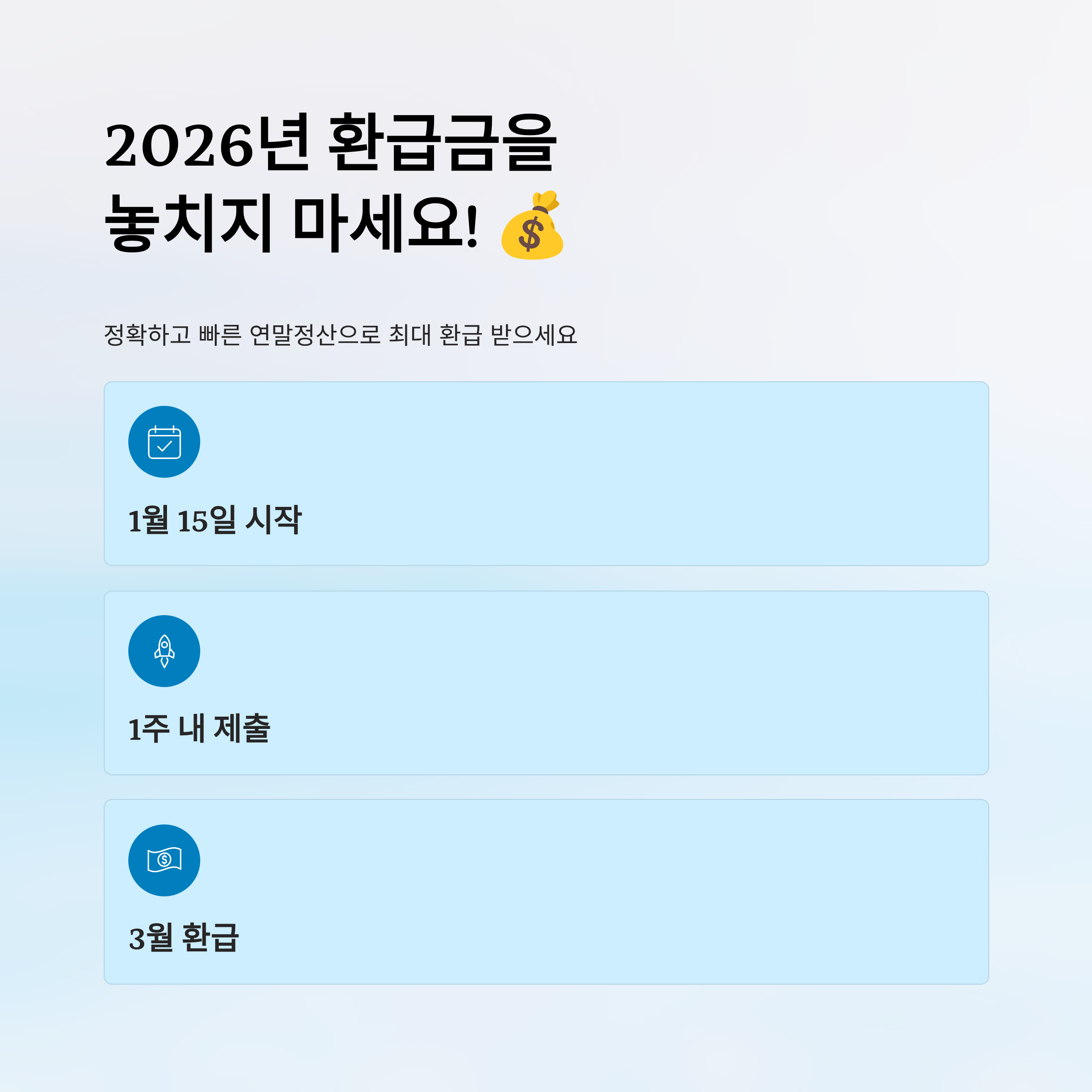 정확하고 빠른 연말정산으로 2026년 환급금을 놓치지 마세요!