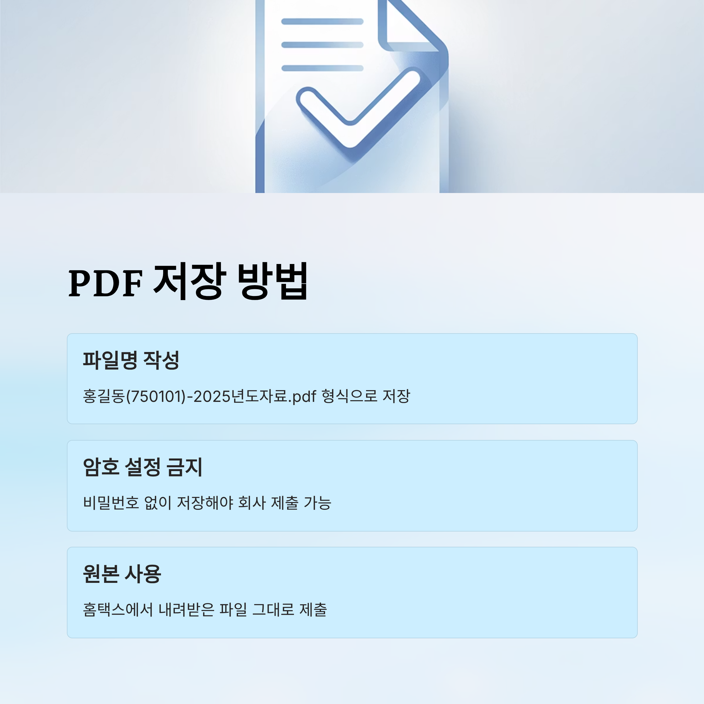 - 파일명 예시: 홍길동(750101)-2025년도자료.pdf