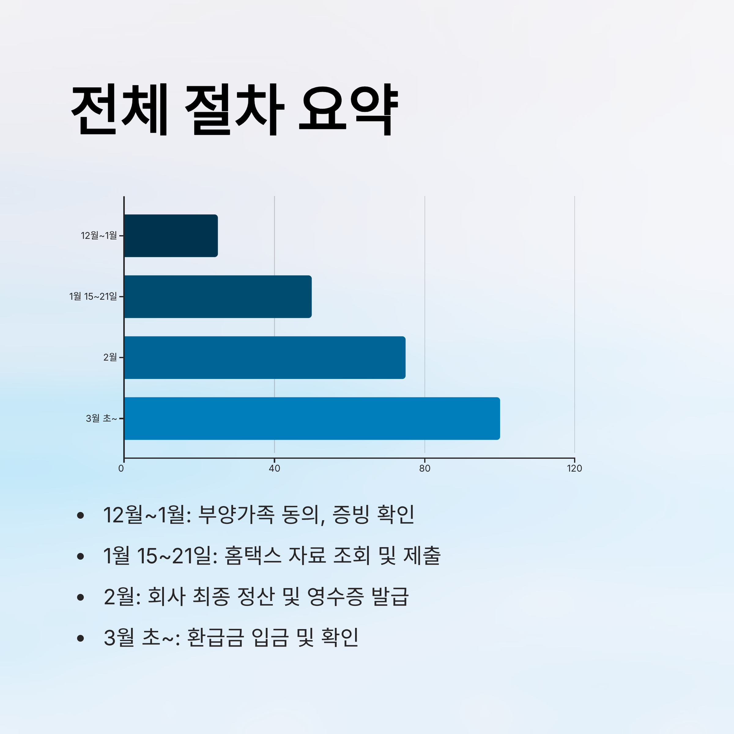 | 3월 초~ | 환급금 입금 및 정산 확인 (홈택스에서 조회) |