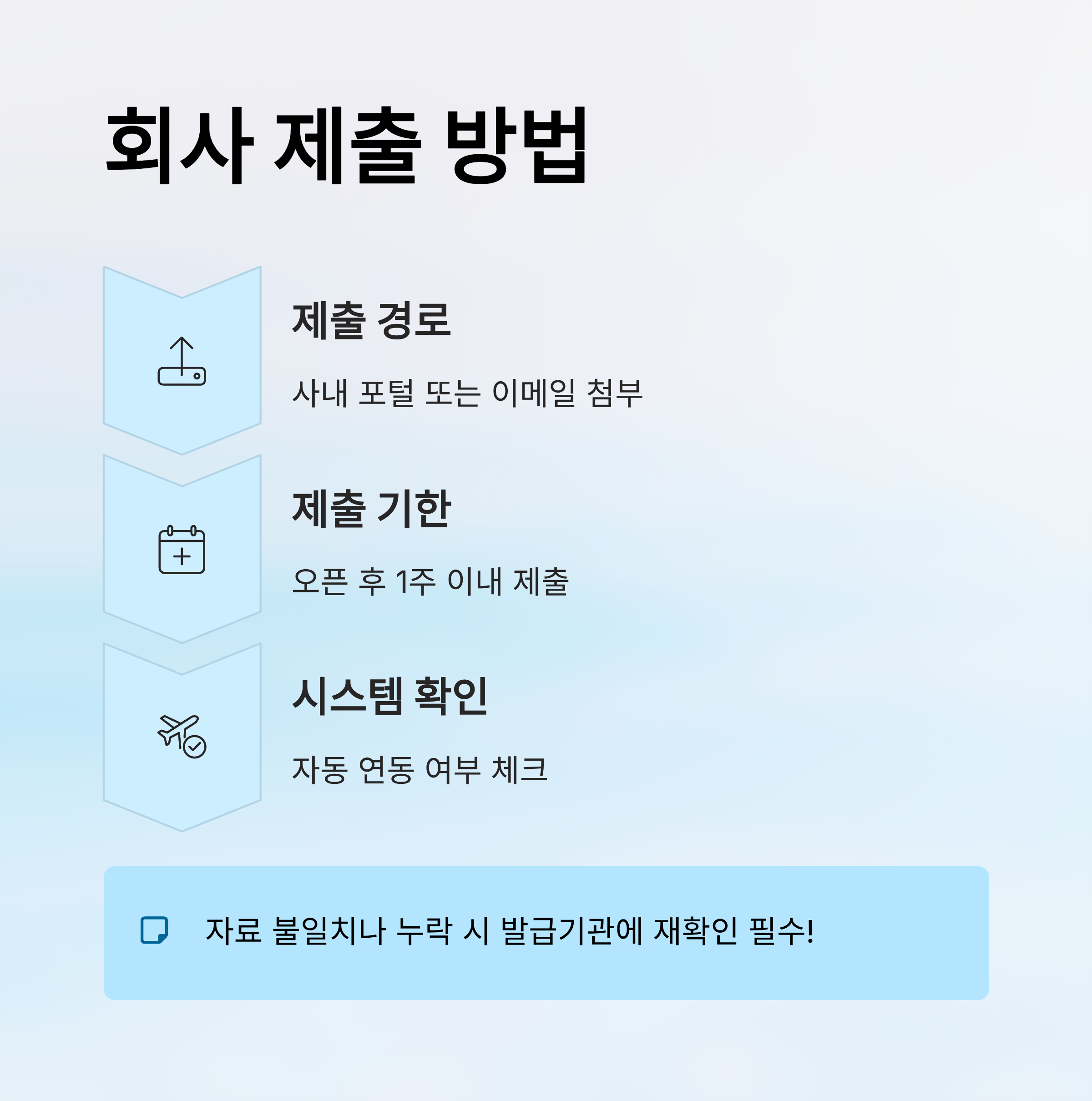 ⚠️ 자료 불일치나 누락 시 반드시 발급기관에 재확인 필요