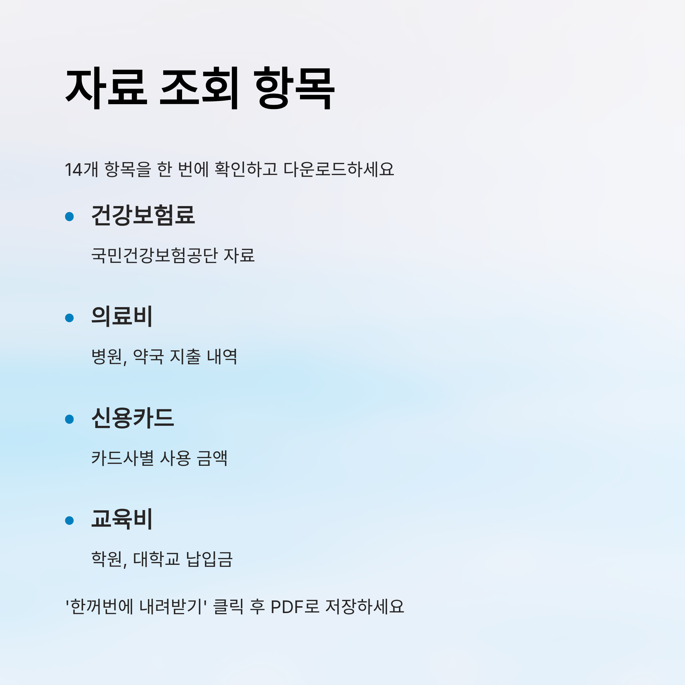 - (건강보험, 의료비, 신용카드, 교육비 등)