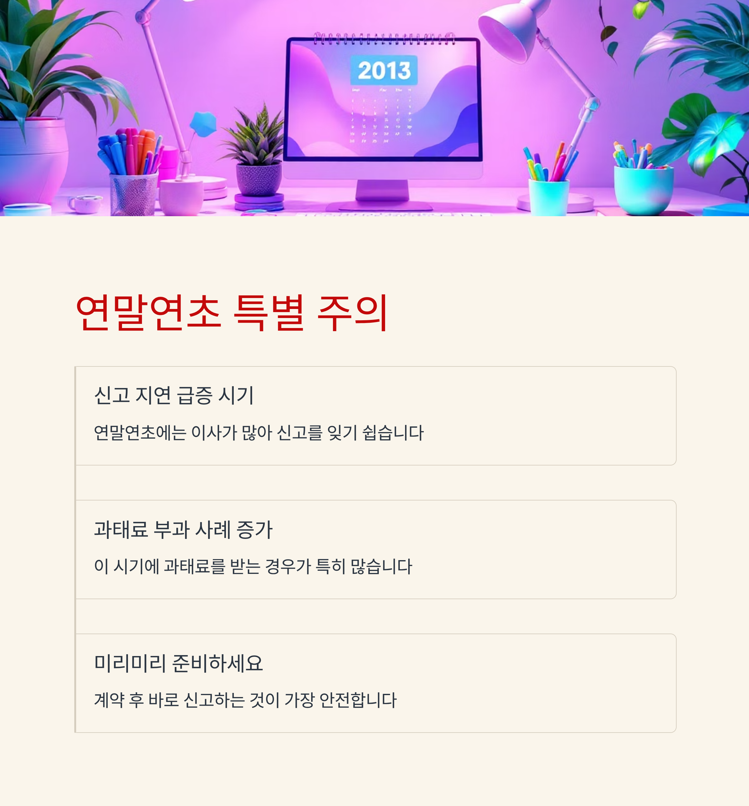특히 연말연초에는 신고 지연으로 인한 과태료 부과 사례가 급증하니, 미리미리 준비하시는 것이 가장 좋습니다.
