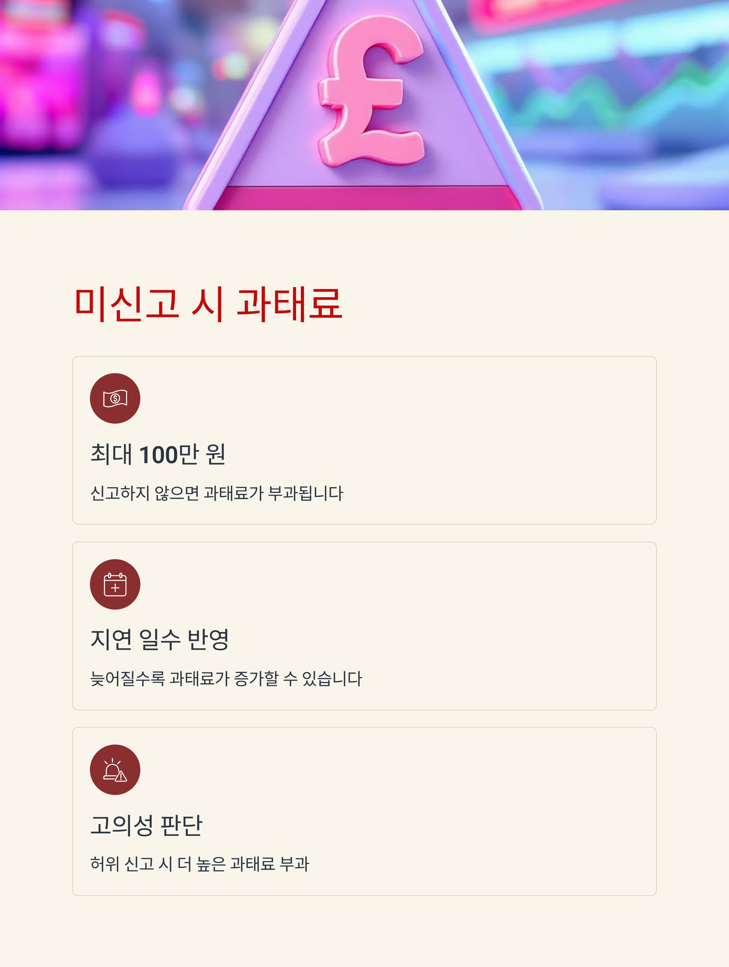 계속 미신고하거나 허위로 금액을 낮춰 신고한 경우엔 고의성으로 간주되어 높은 과태료가 나올 수 있습니다.