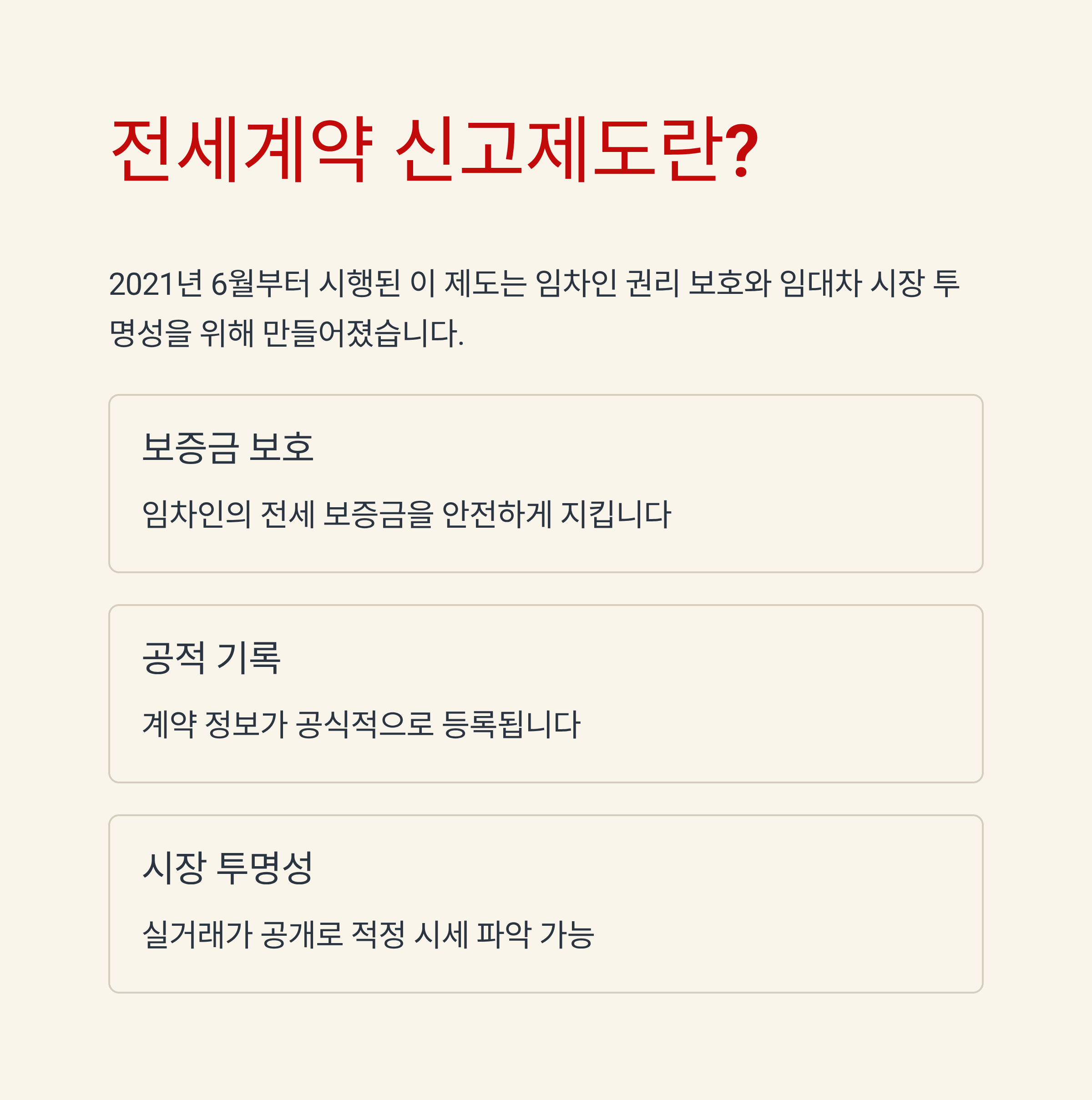 2021년 6월부터 시행된 전세계약 신고 제도는 임차인의 권리를 보호하고, 임대차 시장의 투명성을 높이기 위한 제도입니다.