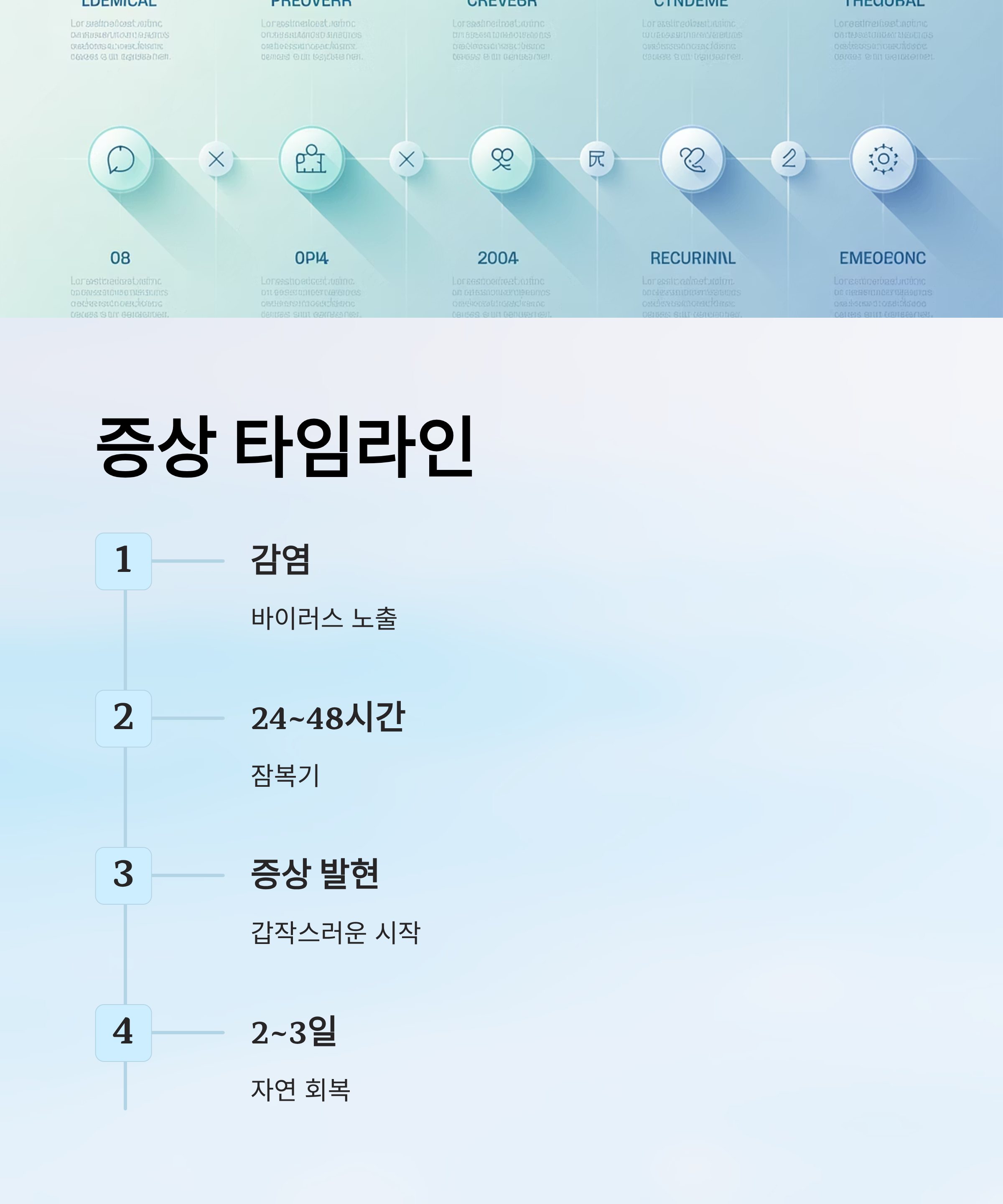 - 회복 후에도 최소 3일~최장 2주까지 전염 가능