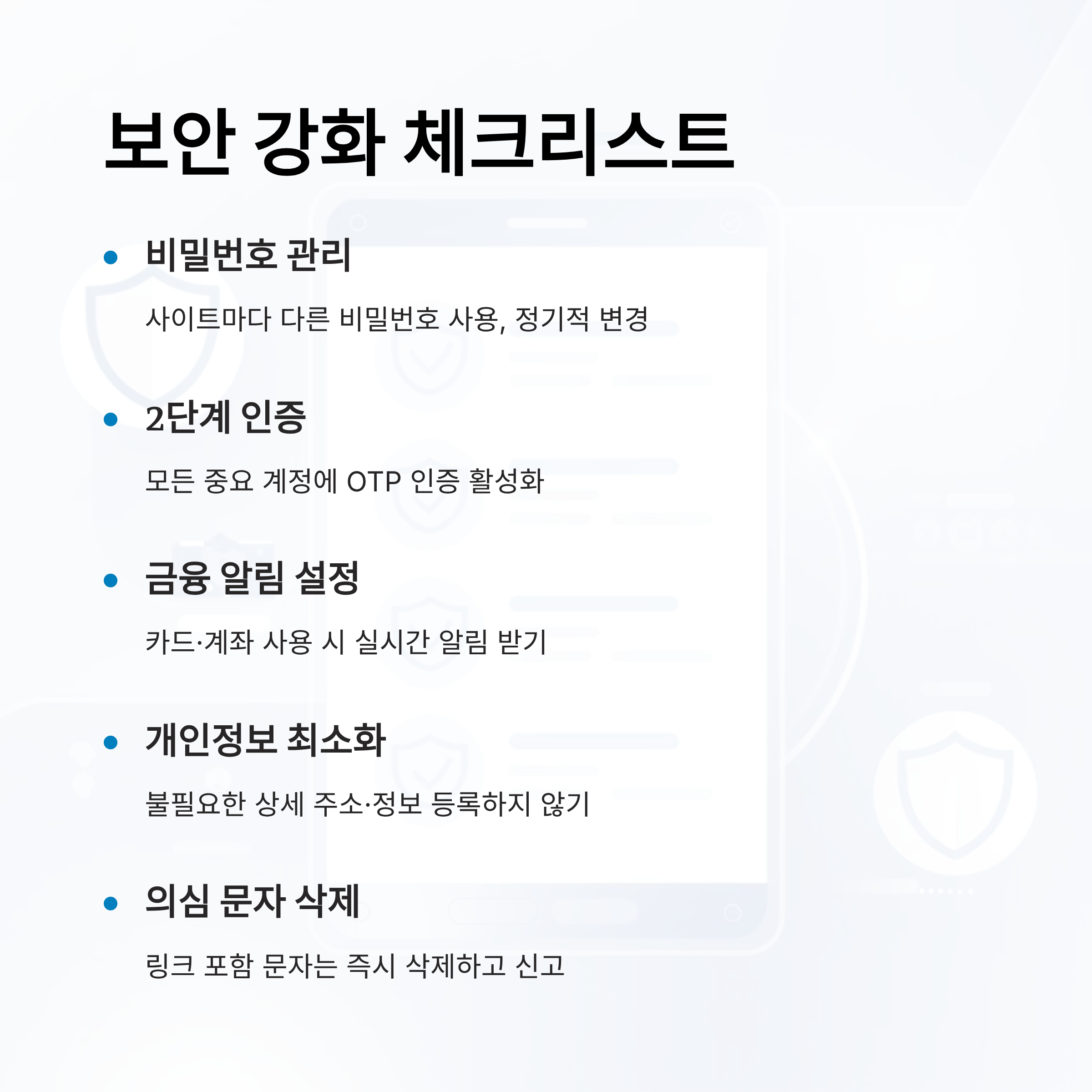 - 이상 거래 발생 시 카드사·은행 즉시 문의