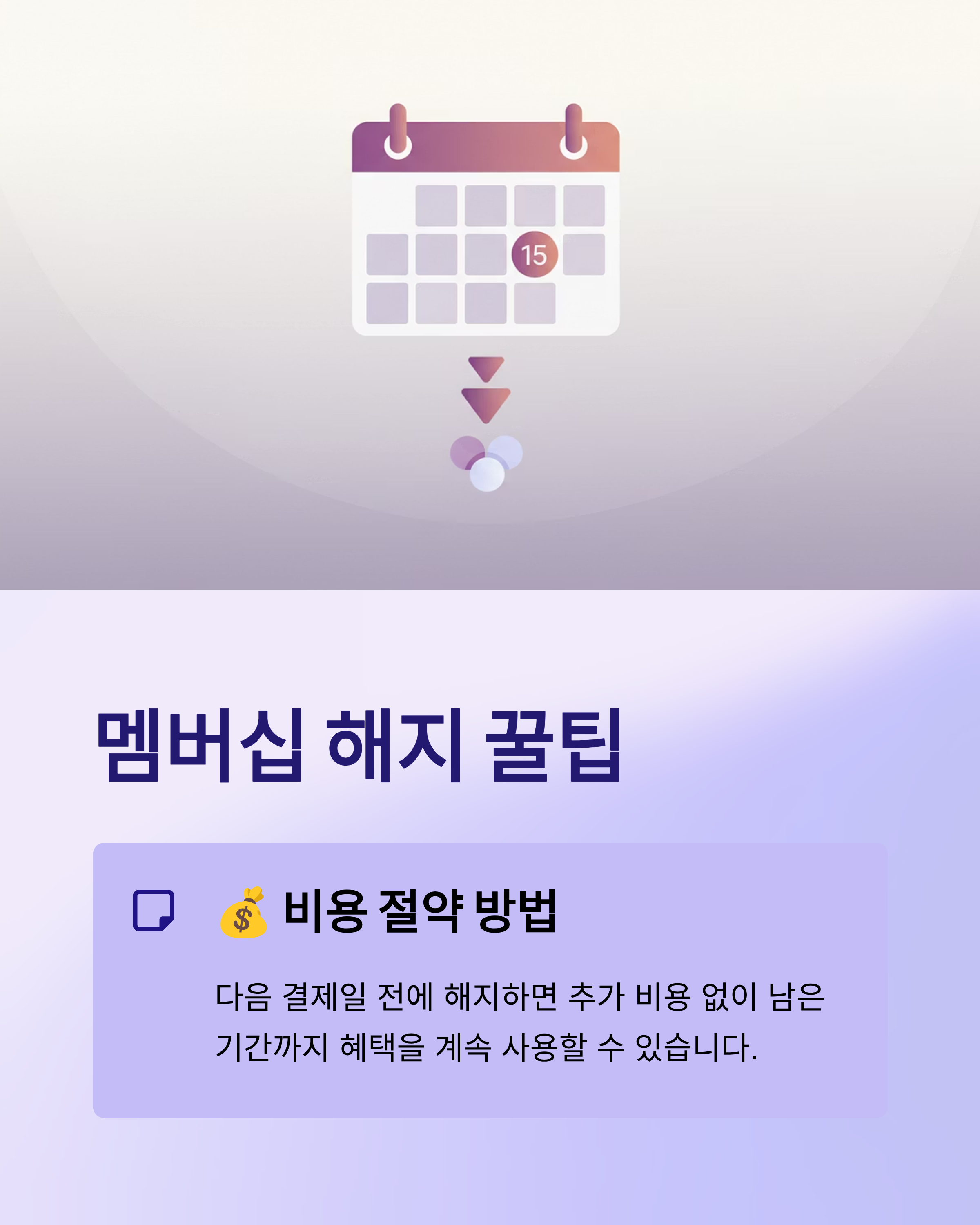 🧾 해지 팁: 다음 결제일 전에 해지하면 추가 비용 없이 남은 기간까지 혜택 사용 가능.