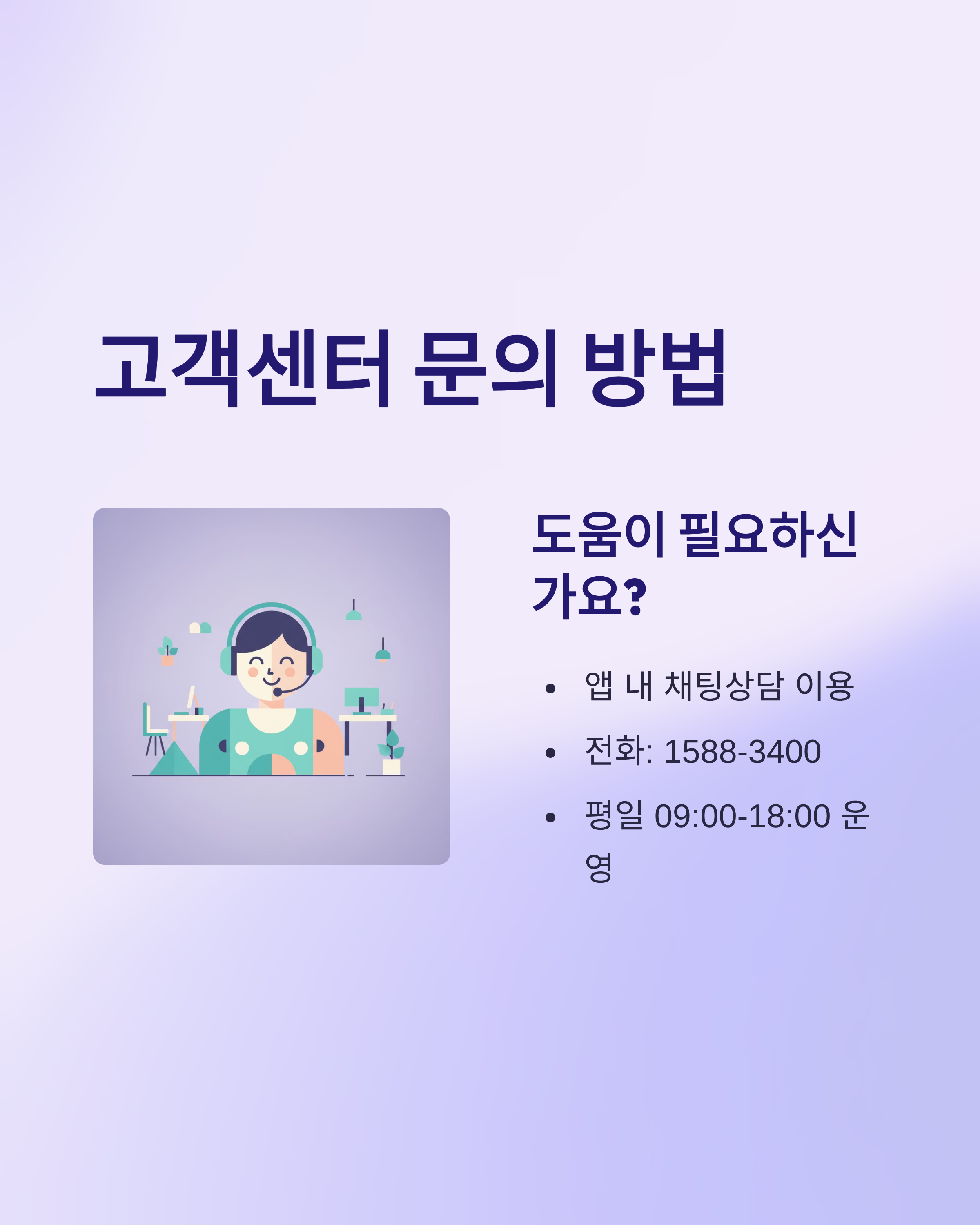 고객센터 문의: 앱 내 채팅상담 또는 1588-3400 연락