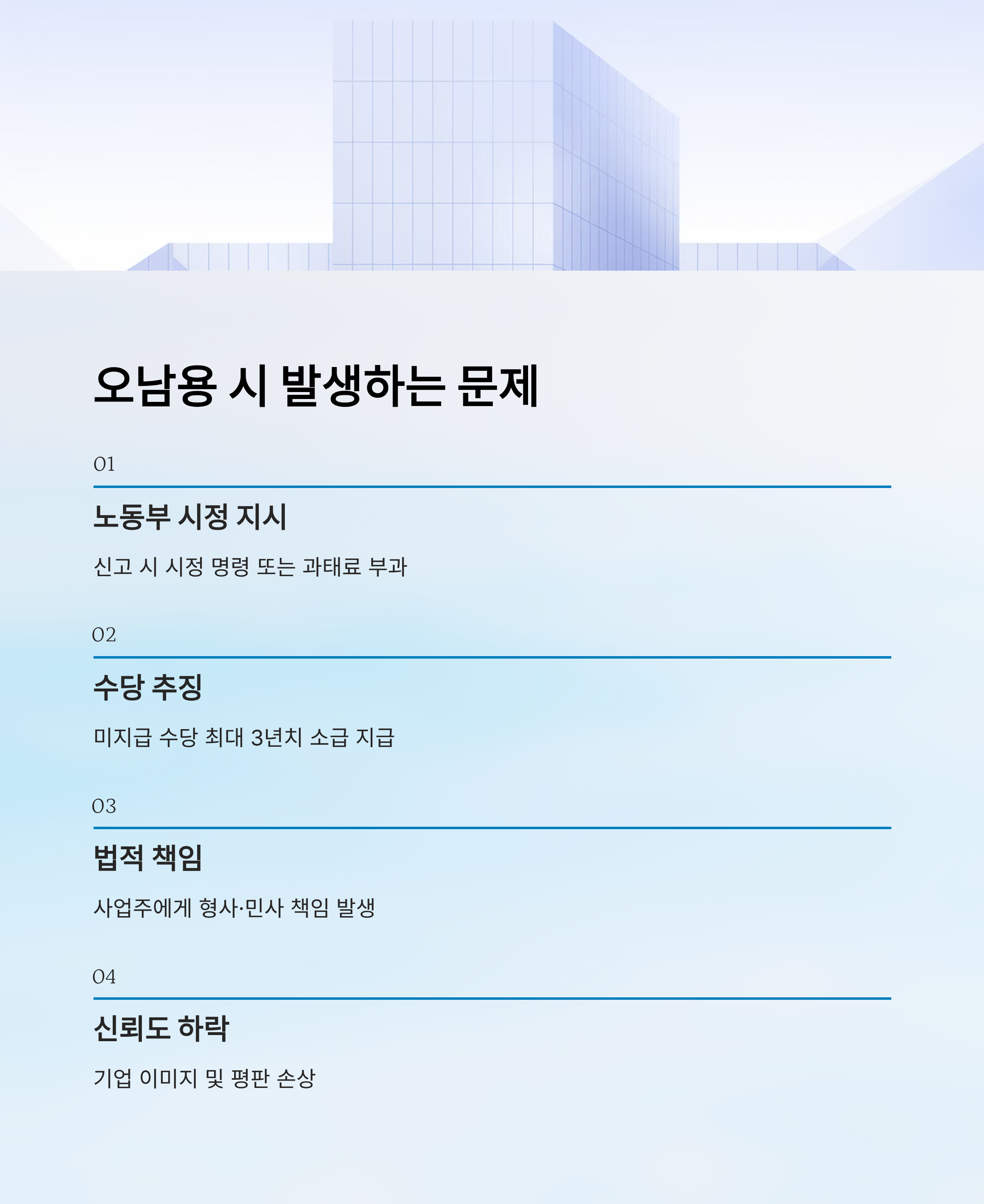 약정된 범위를 초과해 일했음에도 불구하고 추가 수당을 지급하지 않는 문제가 발생할 수 있습니다. - 근로시간 관리 부재 가능성