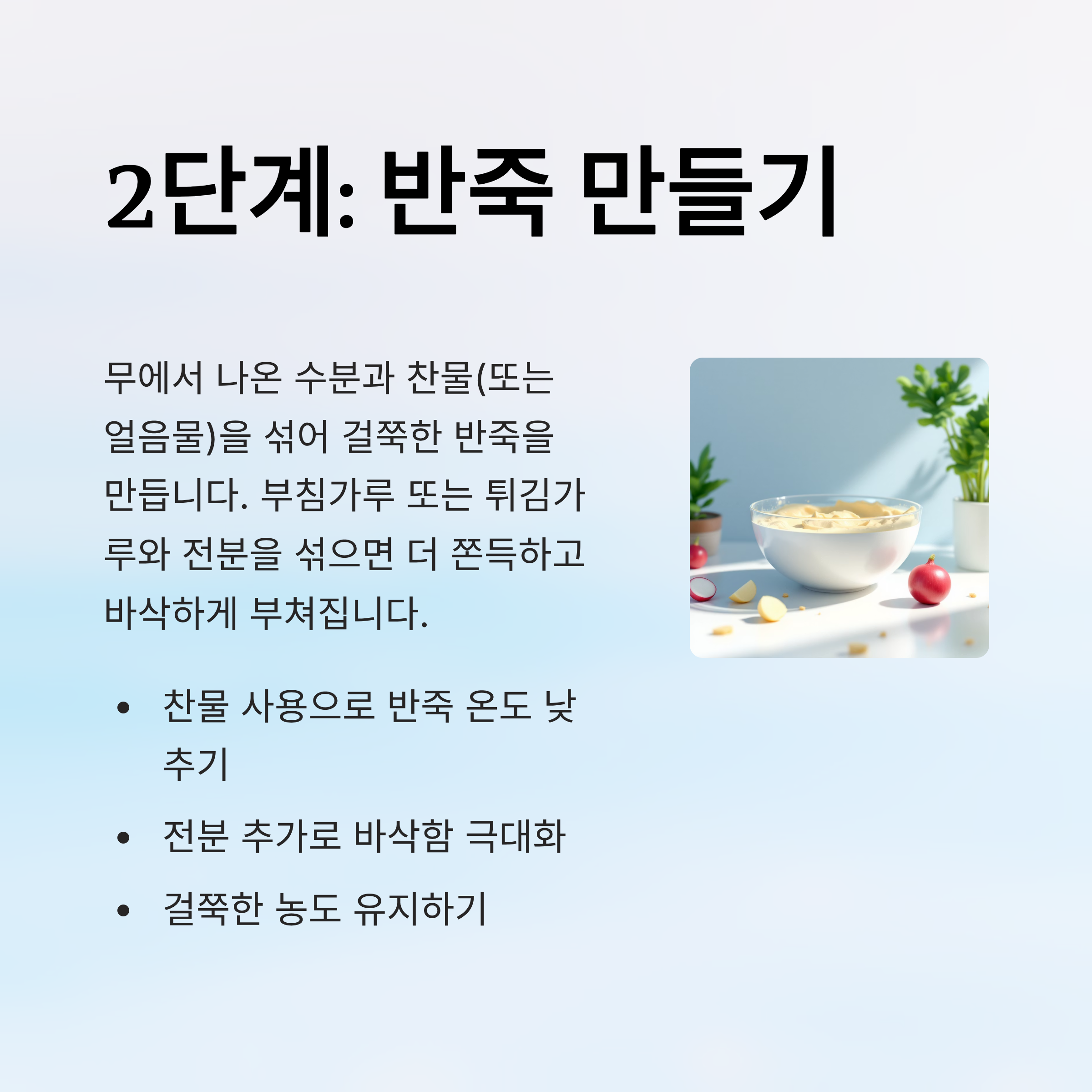 - 무에서 나온 수분과 찬물(또는 얼음물)을 섞어 걸쭉한 반죽을 만듭니다.