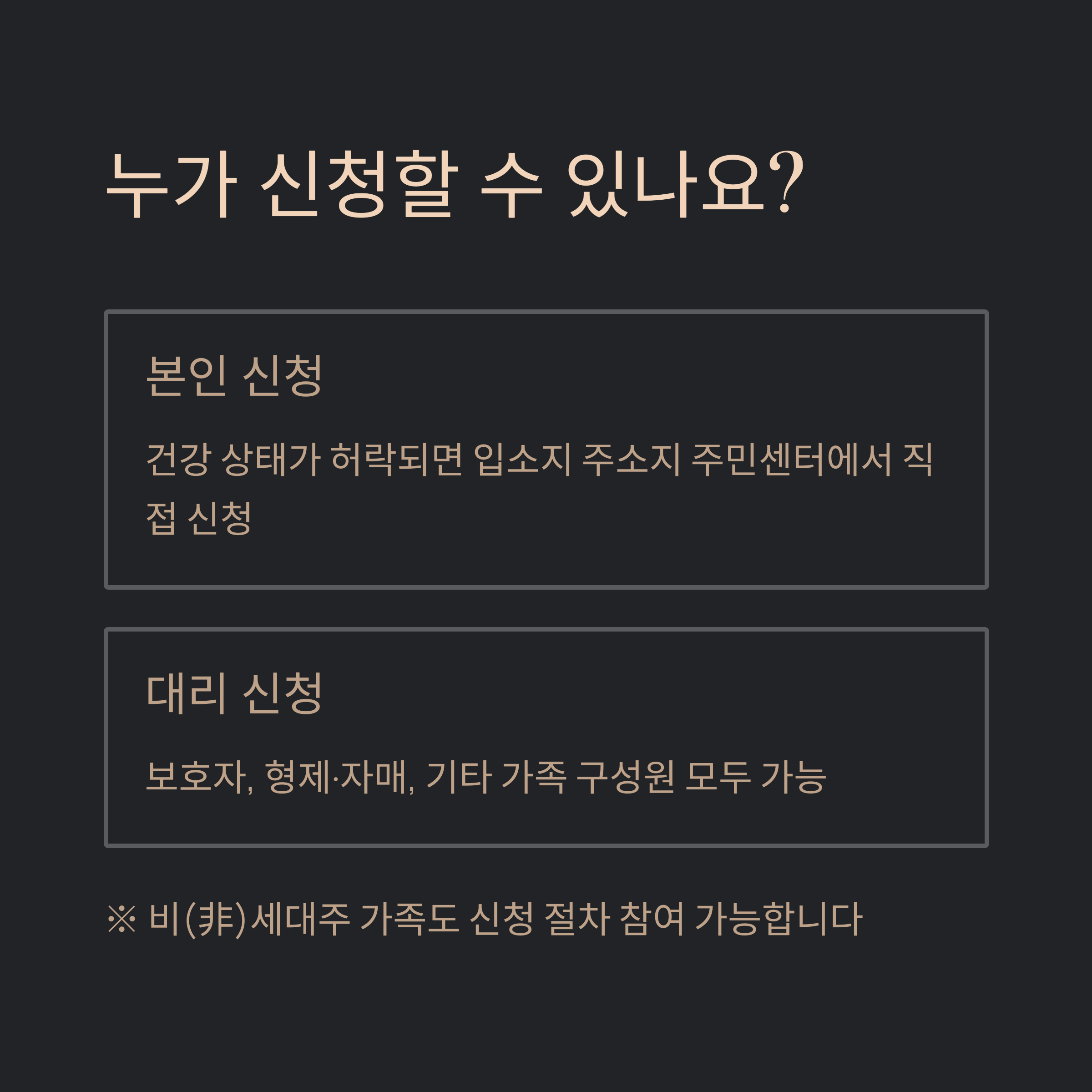 1. 신청 주체: 본인, 보호자, 형제·자매 모두 가능