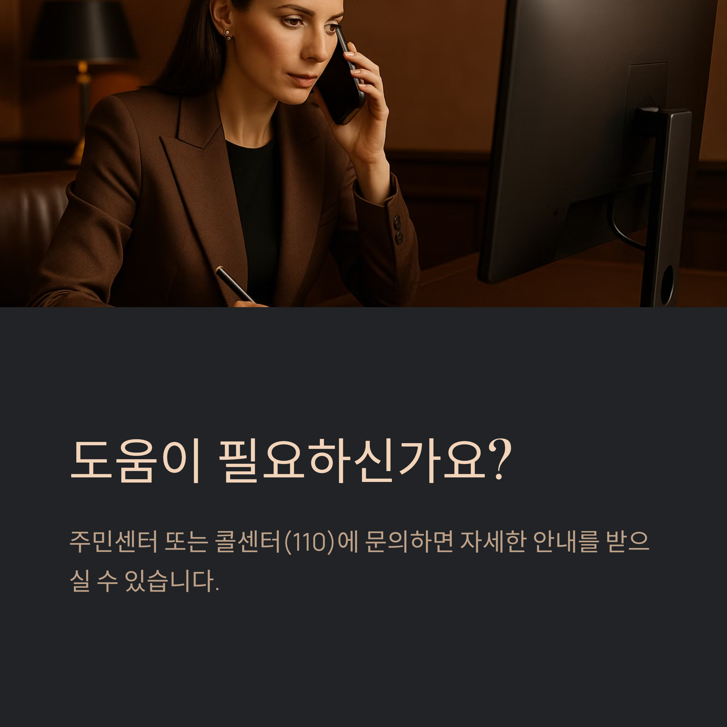 - 주민센터 또는 콜센터(110)에 문의하면 자세한 안내를 받으실 수 있습니다.