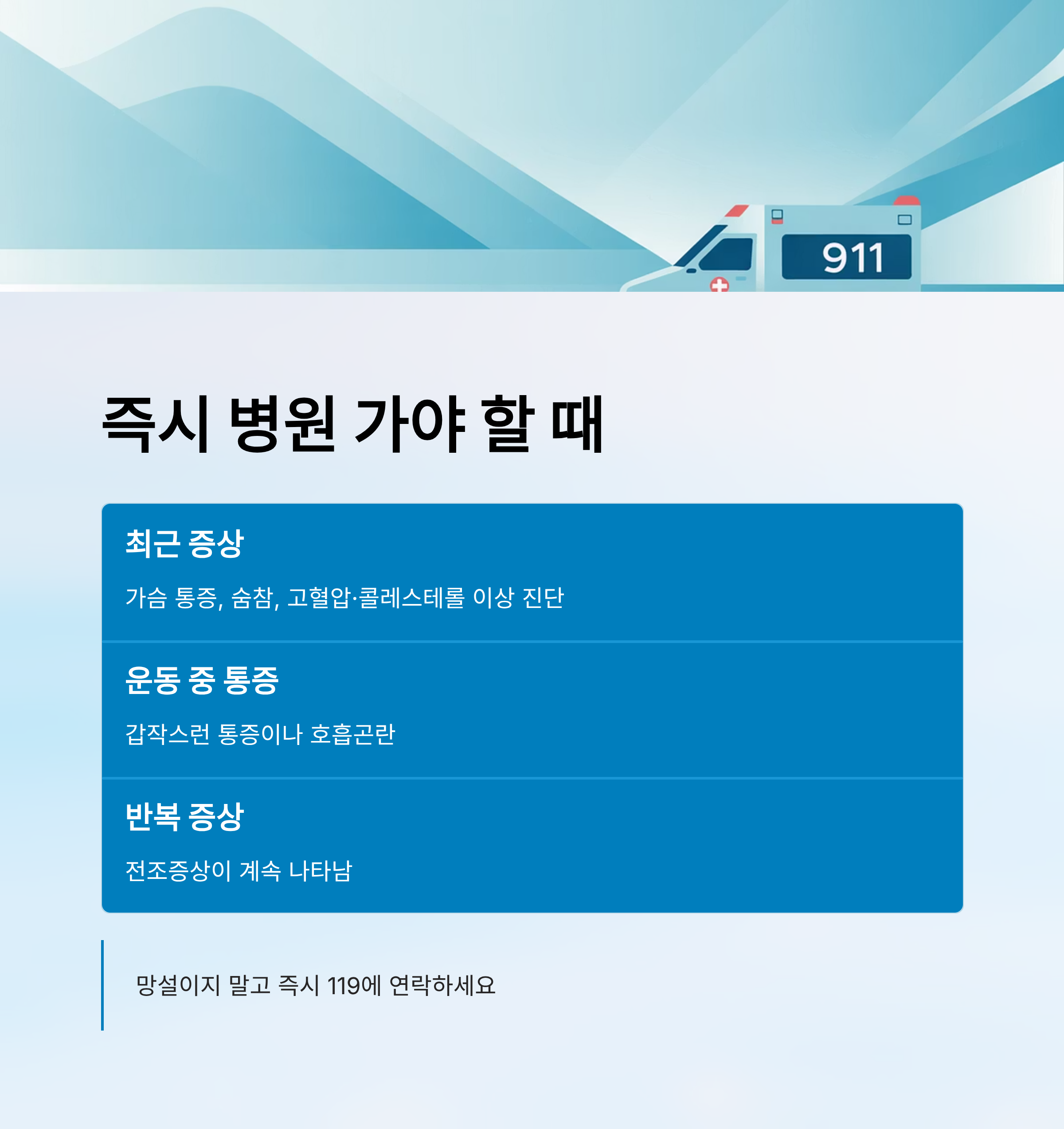 - 운동 중 통증이 나타나거나 갑자기 숨이 찰 경우