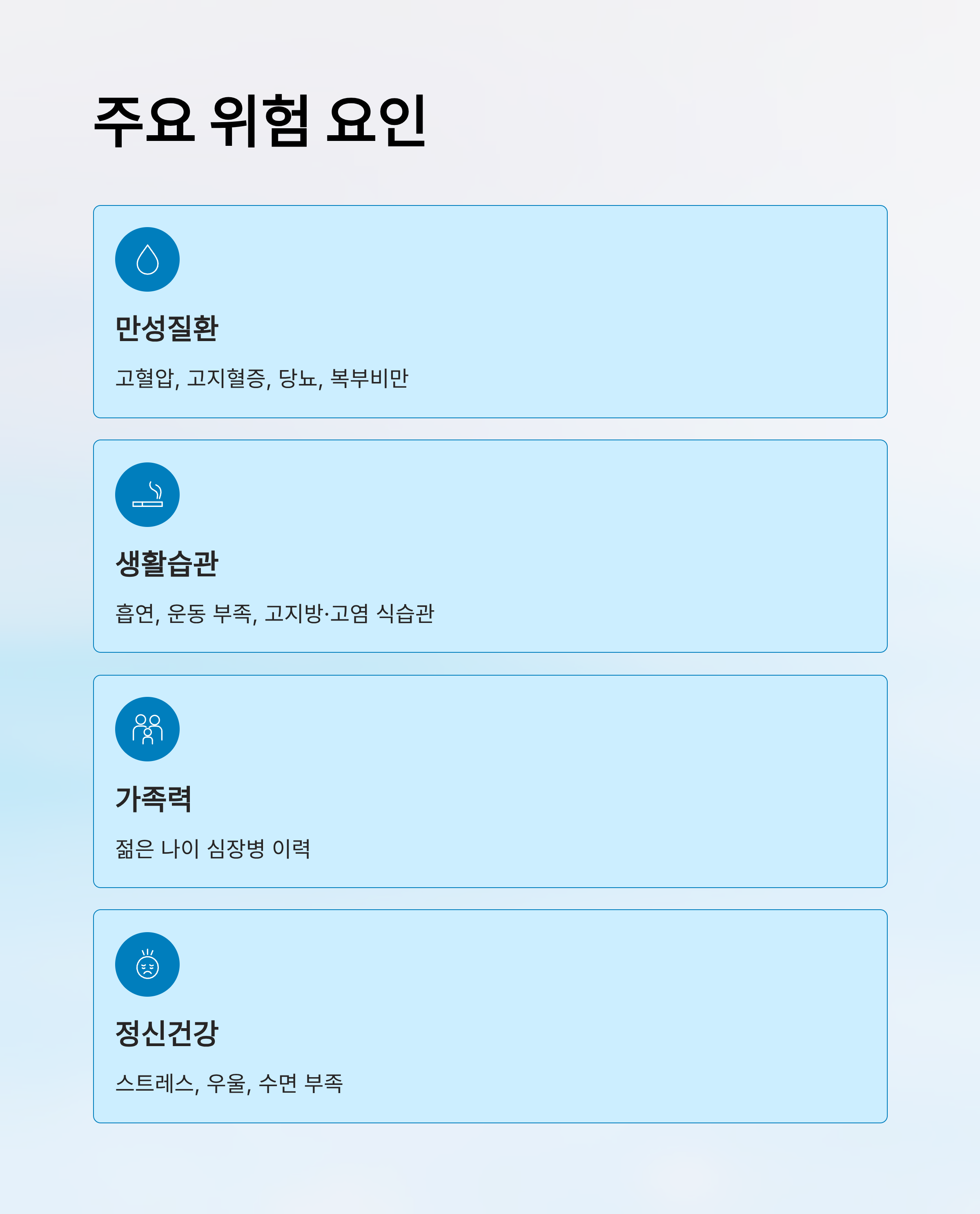 - 흡연, 운동 부족, 고지방·고염 식습관