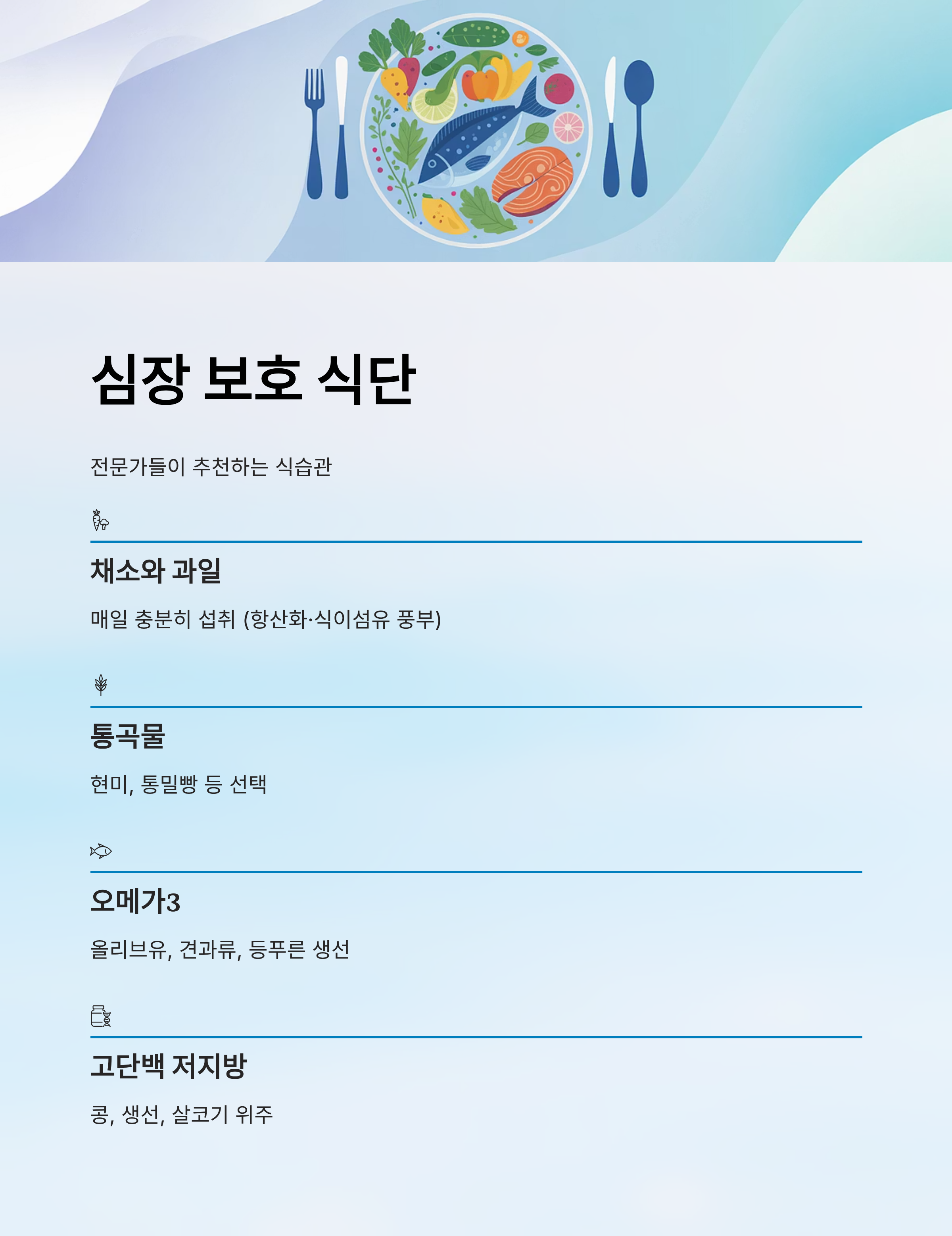 전문가들이 추천하는 ‘심장 보호 식단’은 다음과 같습니다: