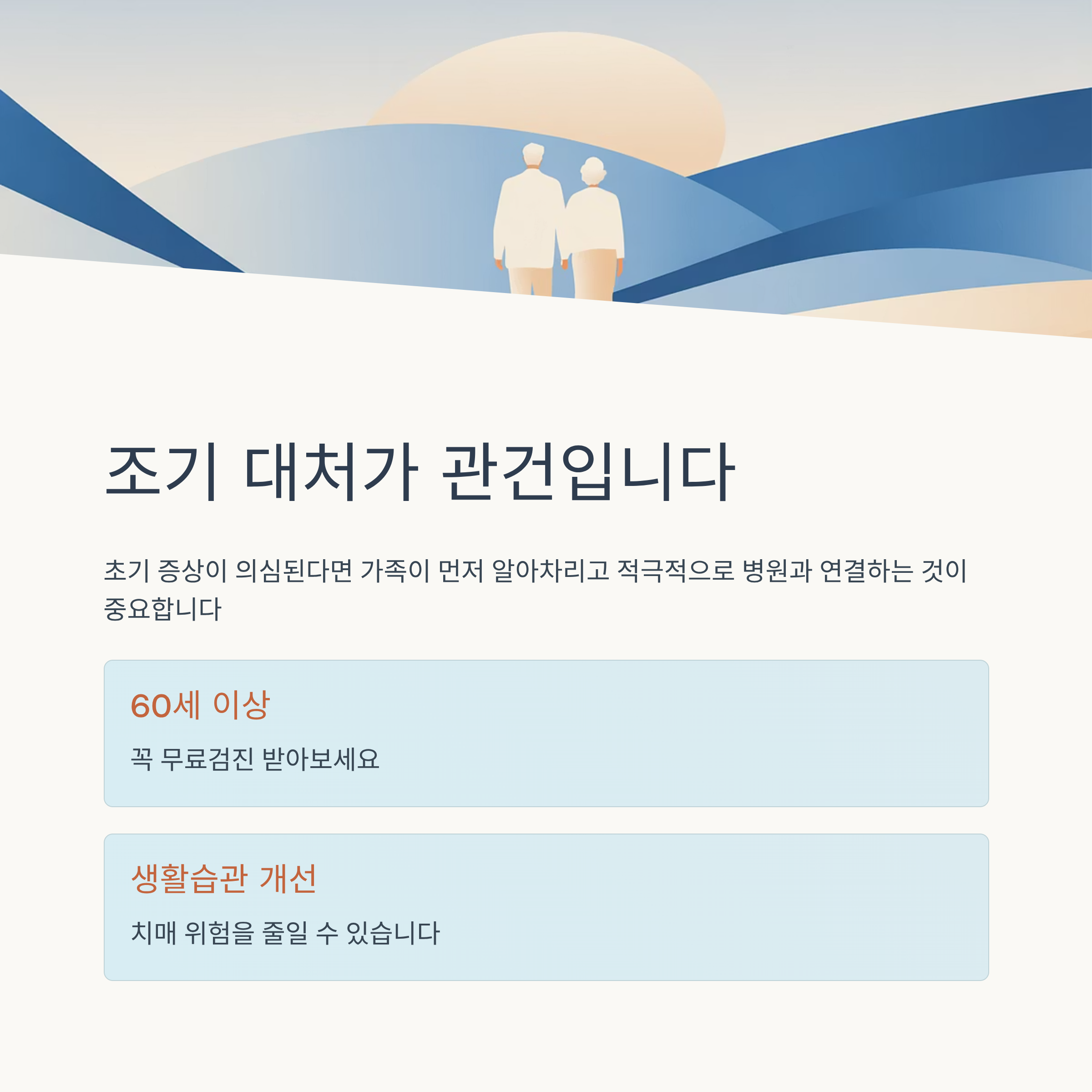 결론: 치매는 ‘조기 대처’가 관건입니다