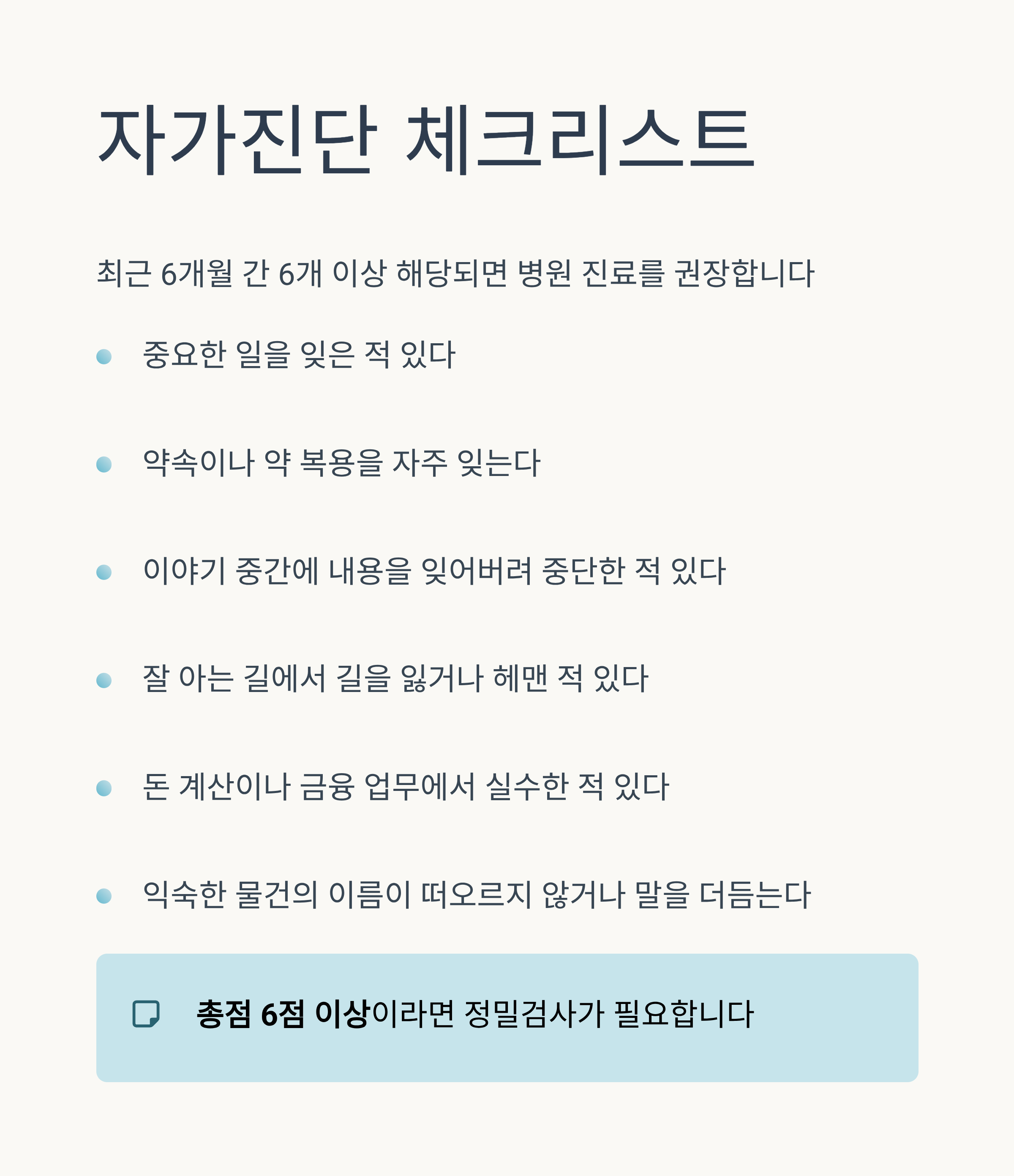 👉 총점 6점 이상이라면 정밀검사 필요합니다.