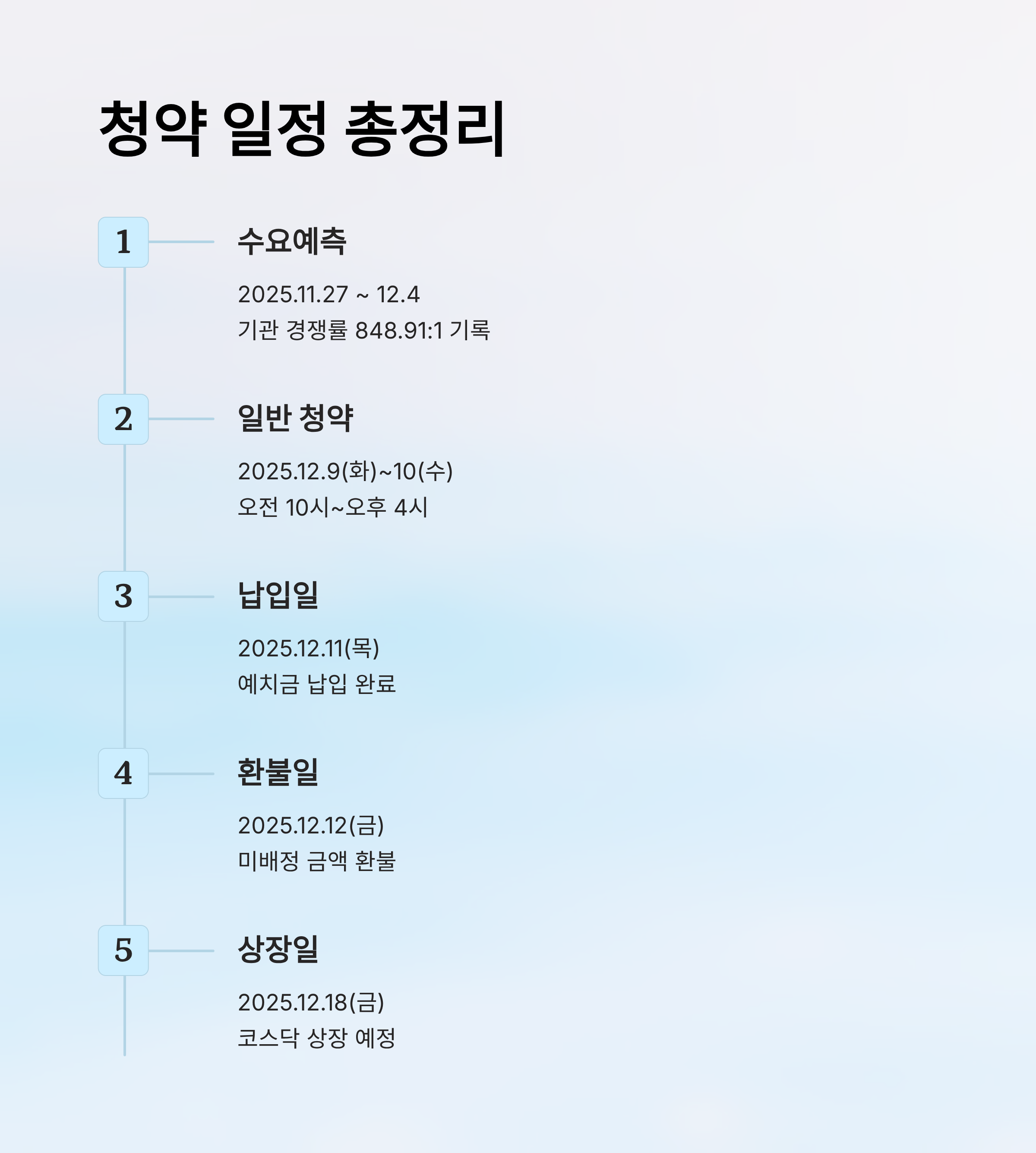 | 수요예측 | 2025.11.27 ~ 12.4 | 기관 경쟁률 848.91:1 기록 |