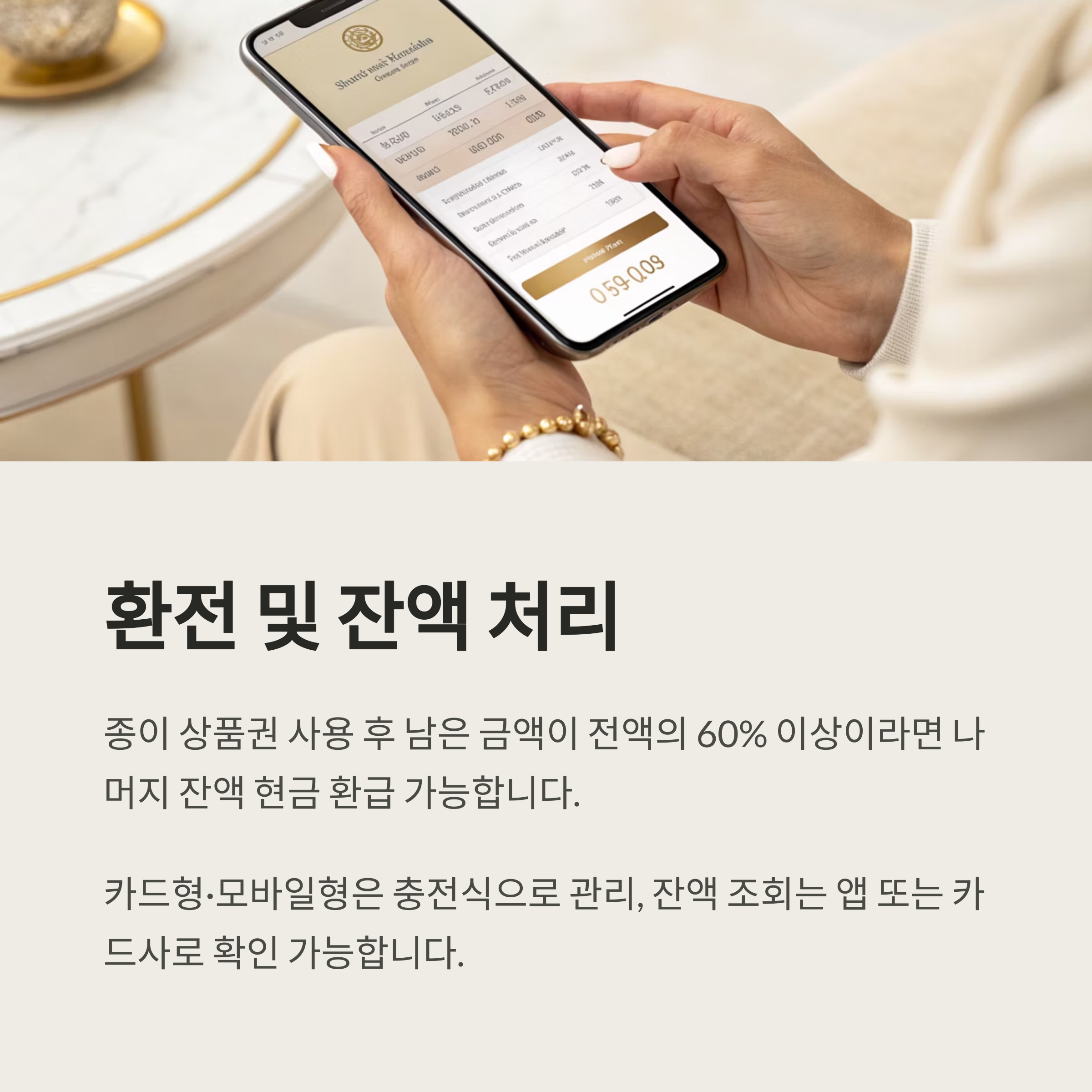 - 종이 상품권 사용 후 남은 금액이 전액의 60% 이상이라면 나머지 잔액 현금 환급 가능