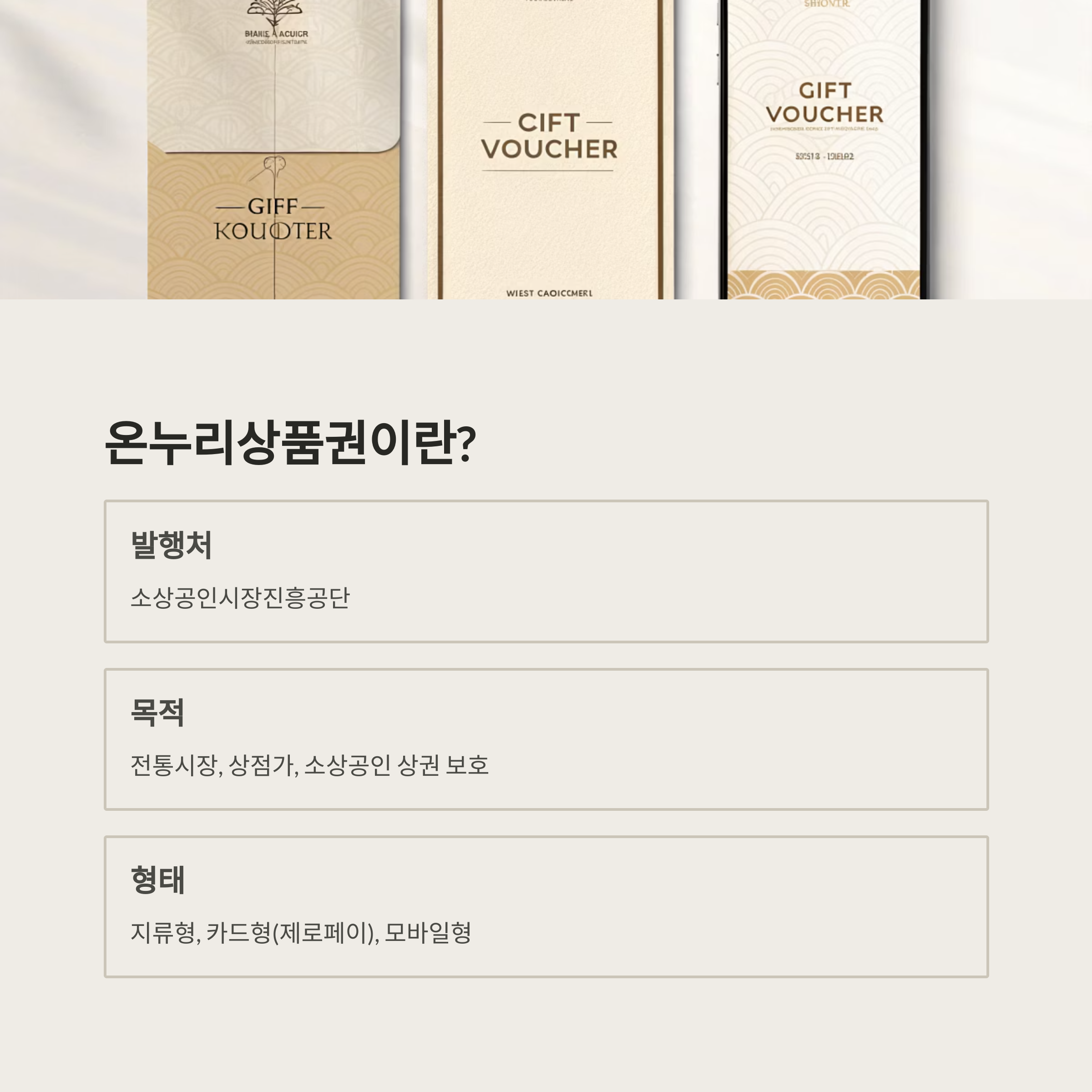 - 상품권 형태: 지류형, 카드형(제로페이), 모바일형