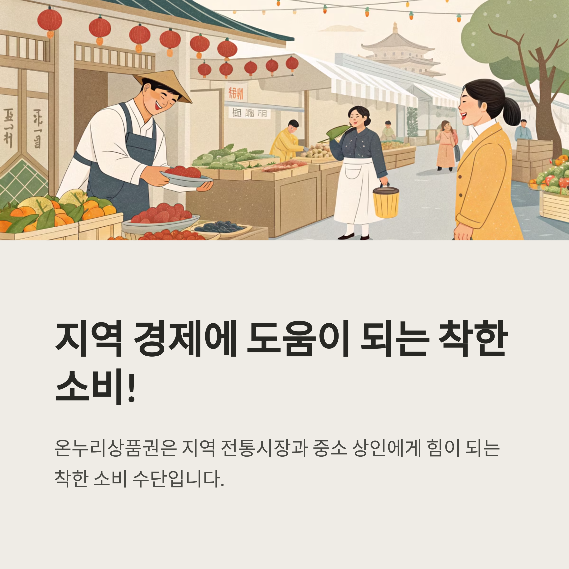 온누리상품권은 지역 전통시장과 중소 상인에게 힘이 되는 착한 소비 수단입니다.