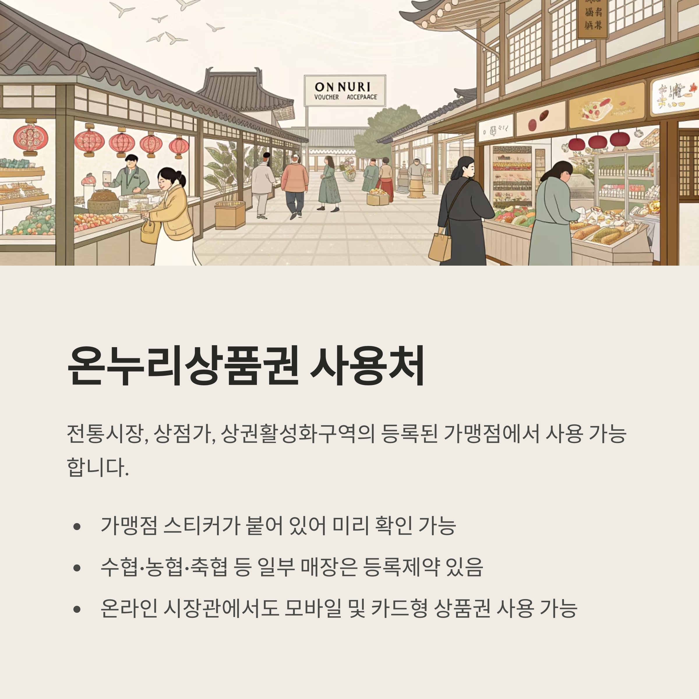 | 사용처 | 전통시장, 상권 활성화구역 가맹점 |
