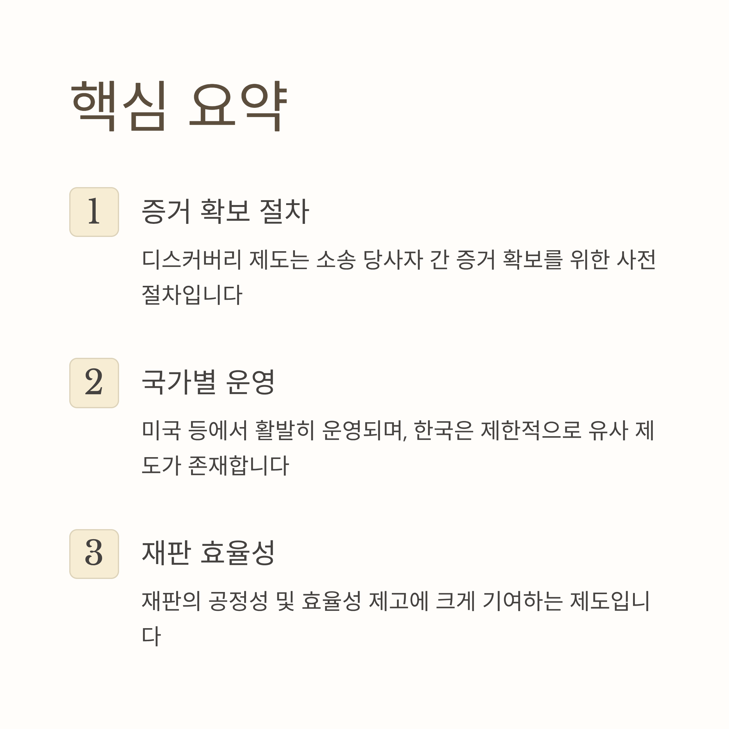 - 디스커버리 제도는 소송 당사자 간 증거 확보 절차