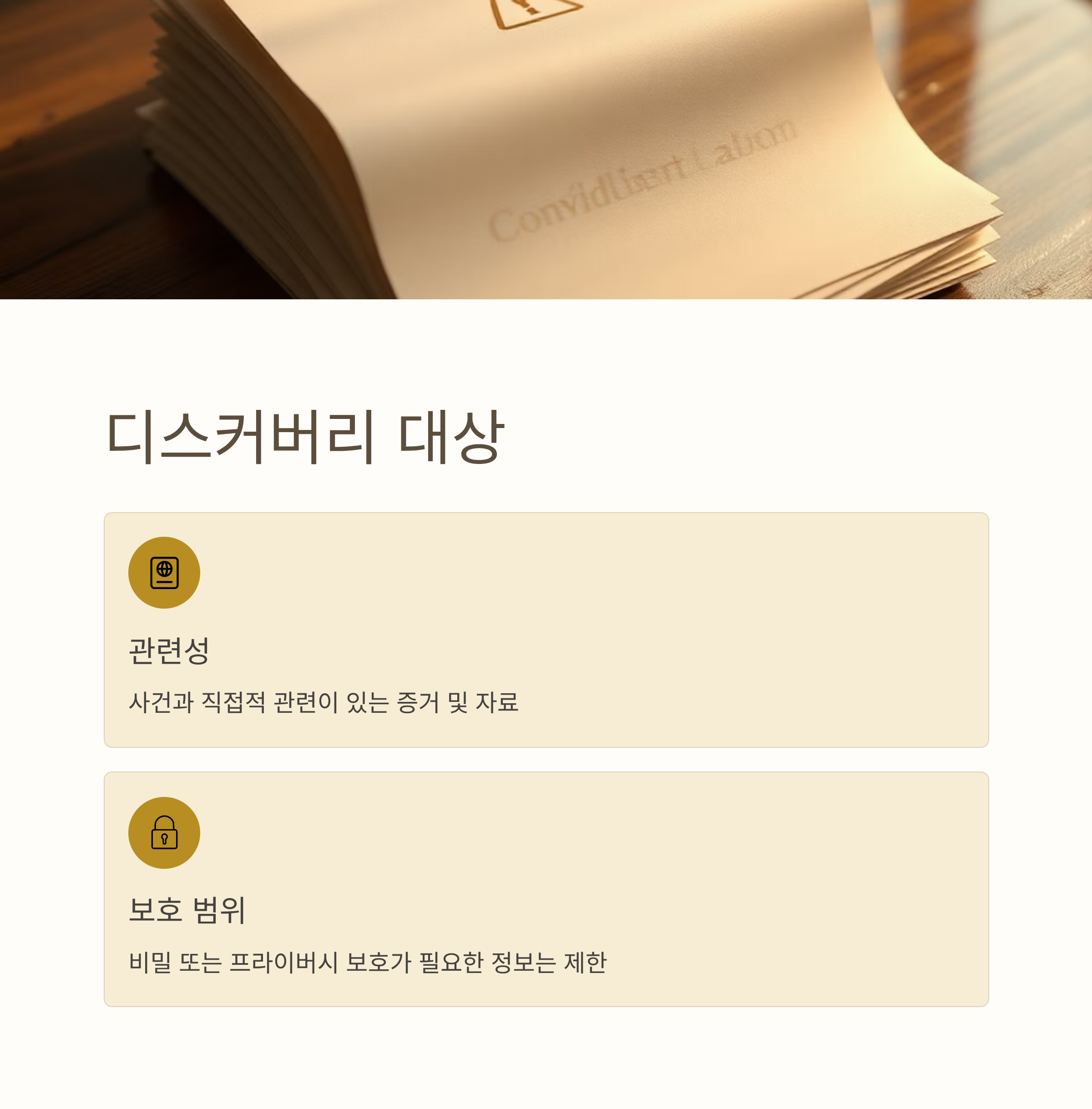 - 사건과 직접적 관련이 있는 증거 및 자료여야 하며, 비밀 또는 프라이버시 보호가 필요한 정보는 제한됩니다.