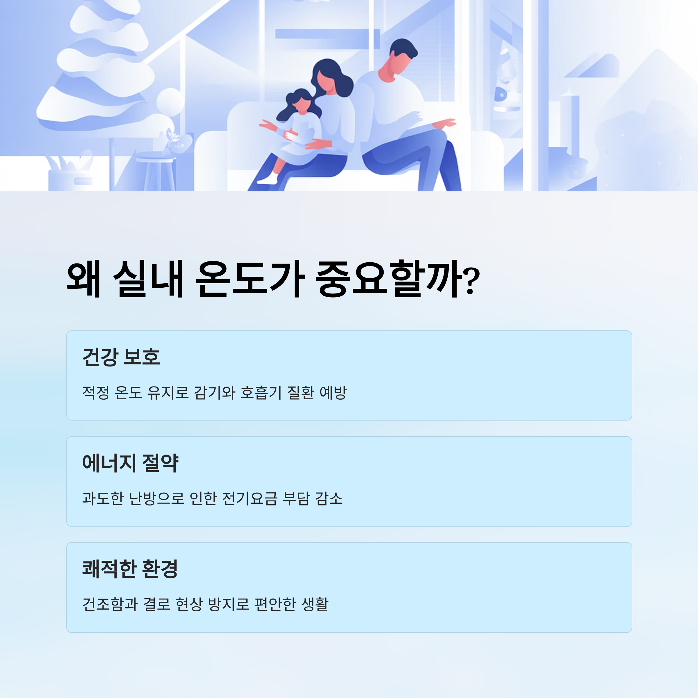 겨울이 되면 난방을 어떻게 설정해야 할지 고민되시죠? 너무 춥게 하면 감기 걸릴까 걱정이고, 너무 덥게 하면 공기가 건조해지고 전기요금 부담도 커집니다. 오늘은 연령대별, 상황별로 추천되는 겨울철 실내 적정 온도와 습도 기준을 정리해드릴게요.