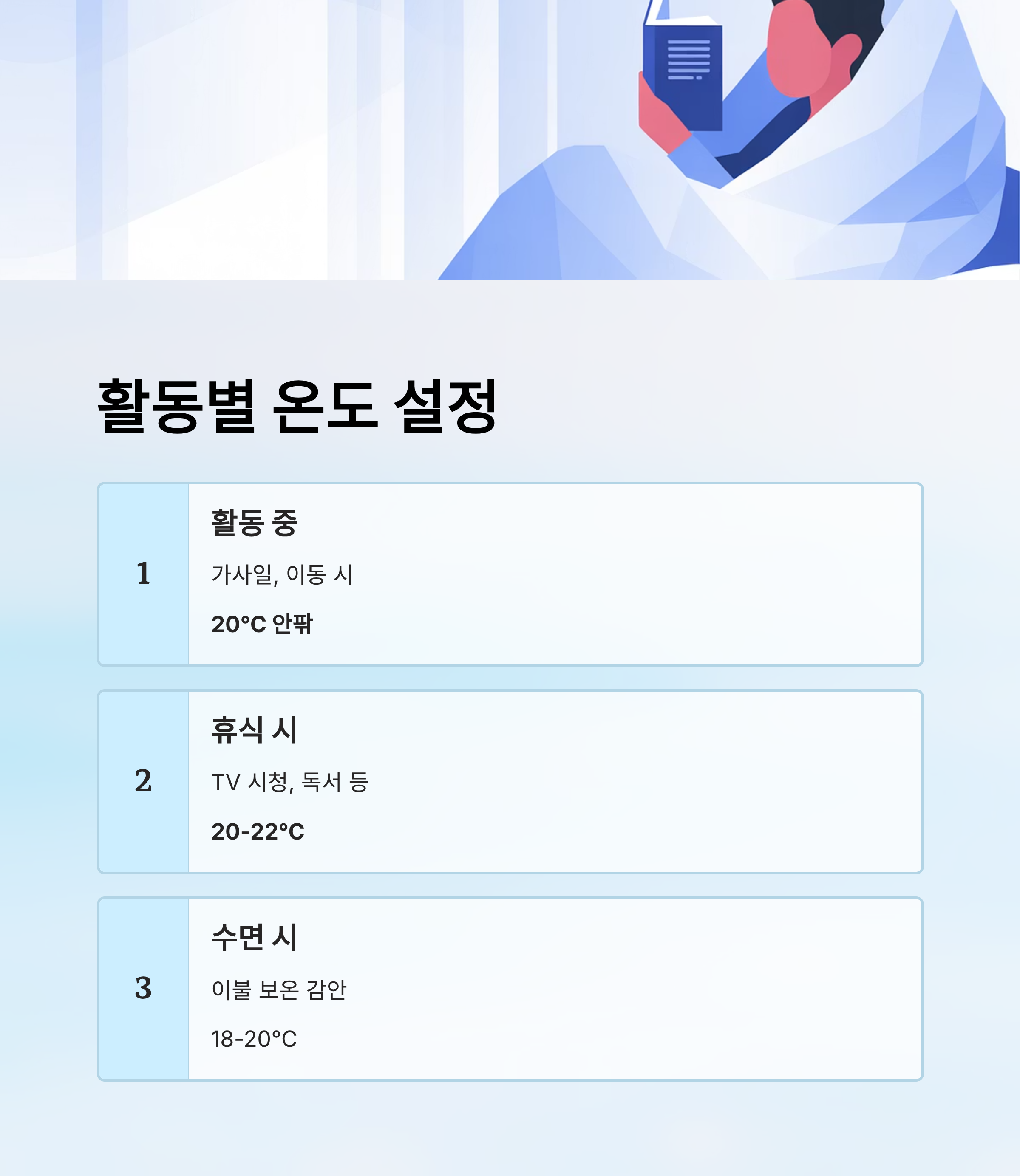🔹 휴식 시 (TV 시청, 독서 등): 20~22℃