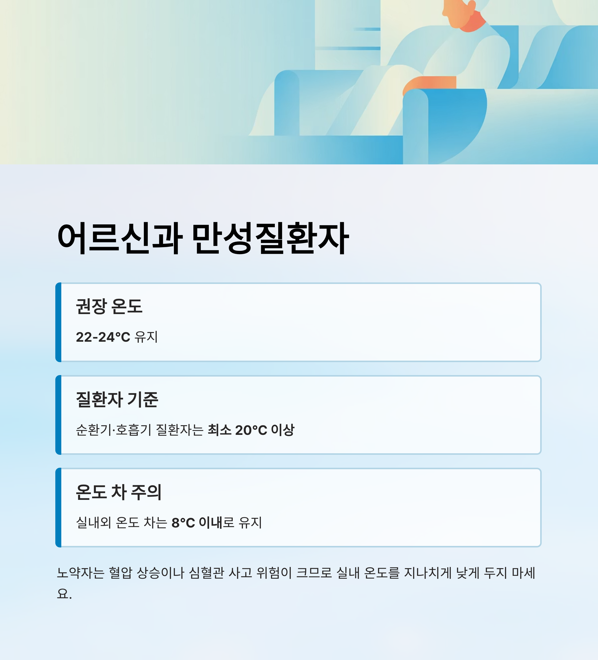 - 순환기·호흡기 질환자: 최소 20℃ 이상 유지