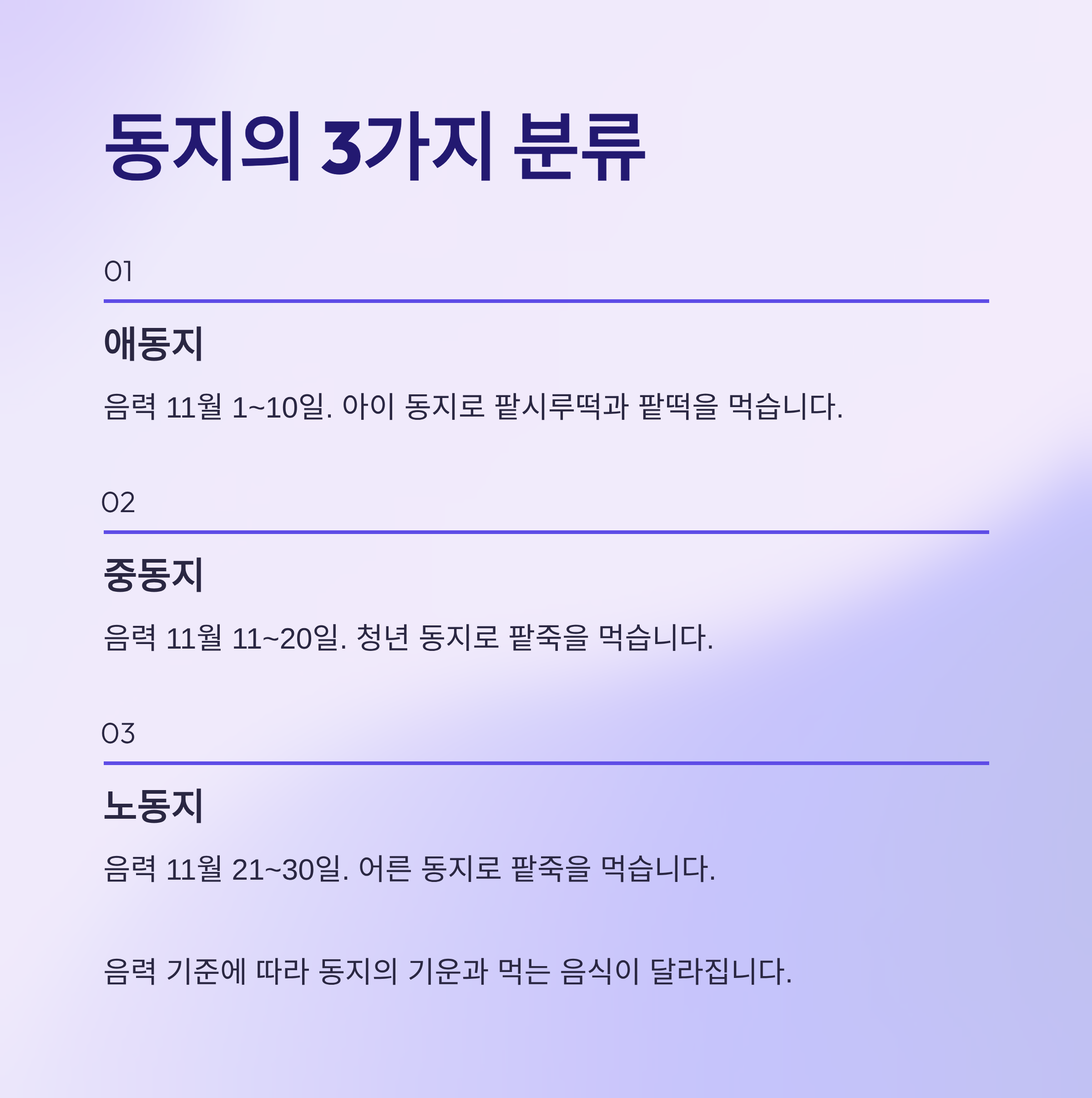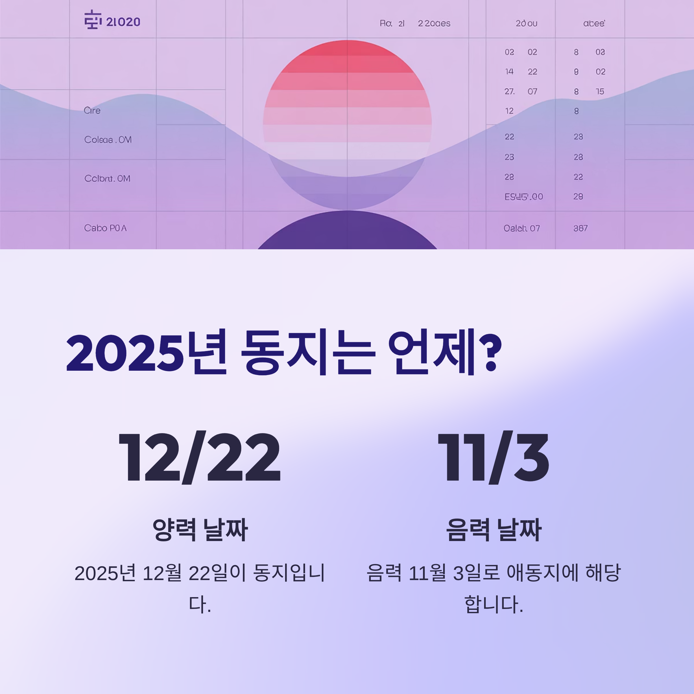 - 2025년 동지는? 음력 11월 3일로 애동지에 해당.