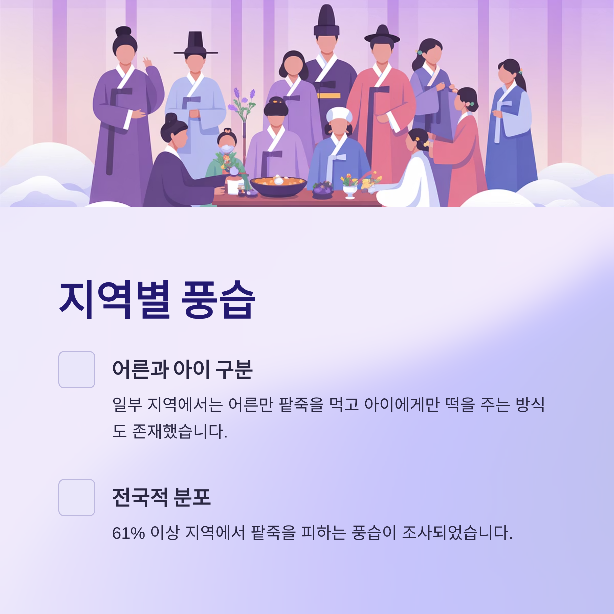 - 일부 지역에서는 어른만 팥죽을 먹고, 아이에게만 떡을 주는 방식도 존재했습니다.