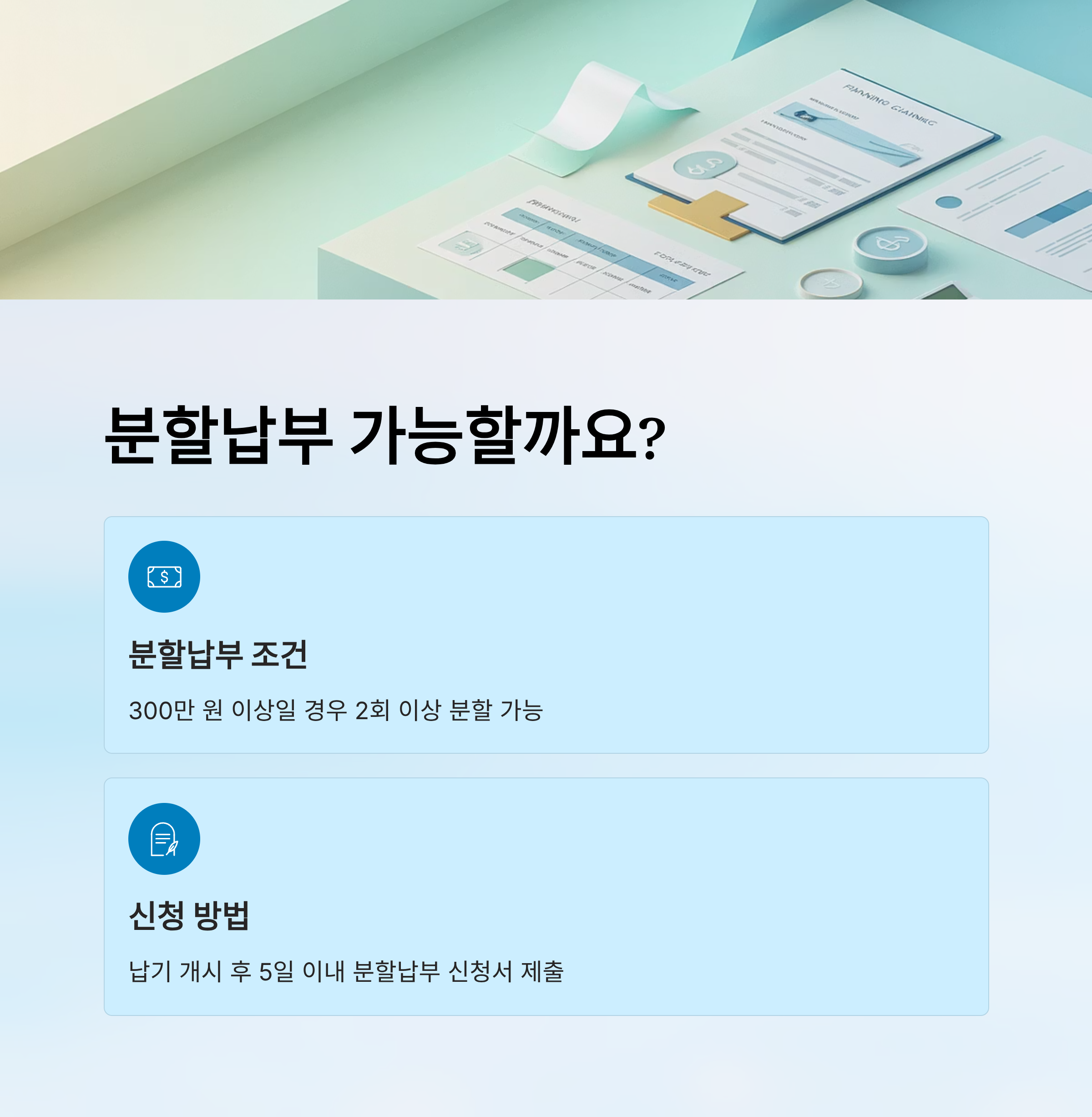 - 납기 개시 후 5일 이내 분할납부 신청서 제출 필요