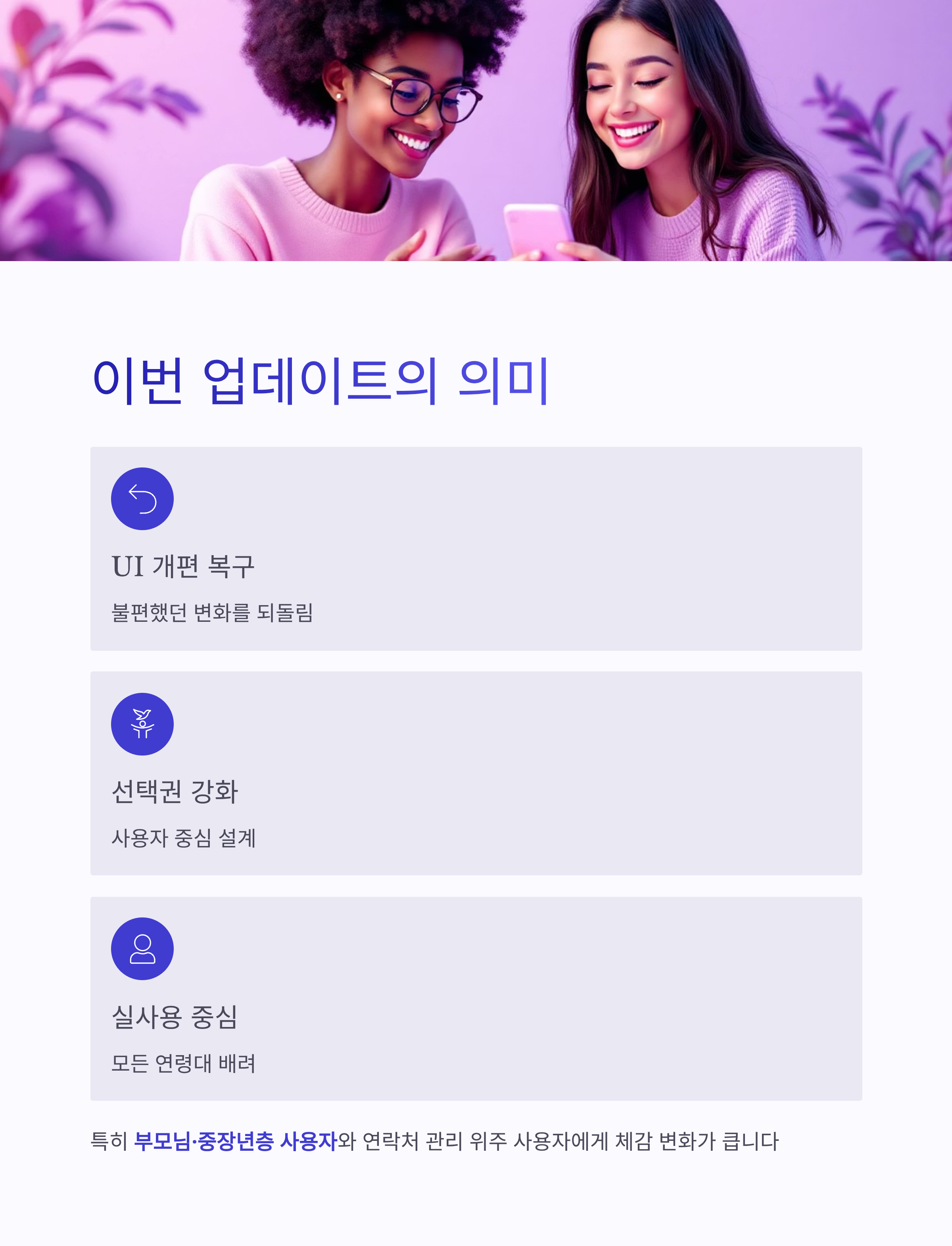 특히 부모님·중장년층 사용자, 연락처 관리 위주 사용자라면 체감 변화가 큰 업데이트이니