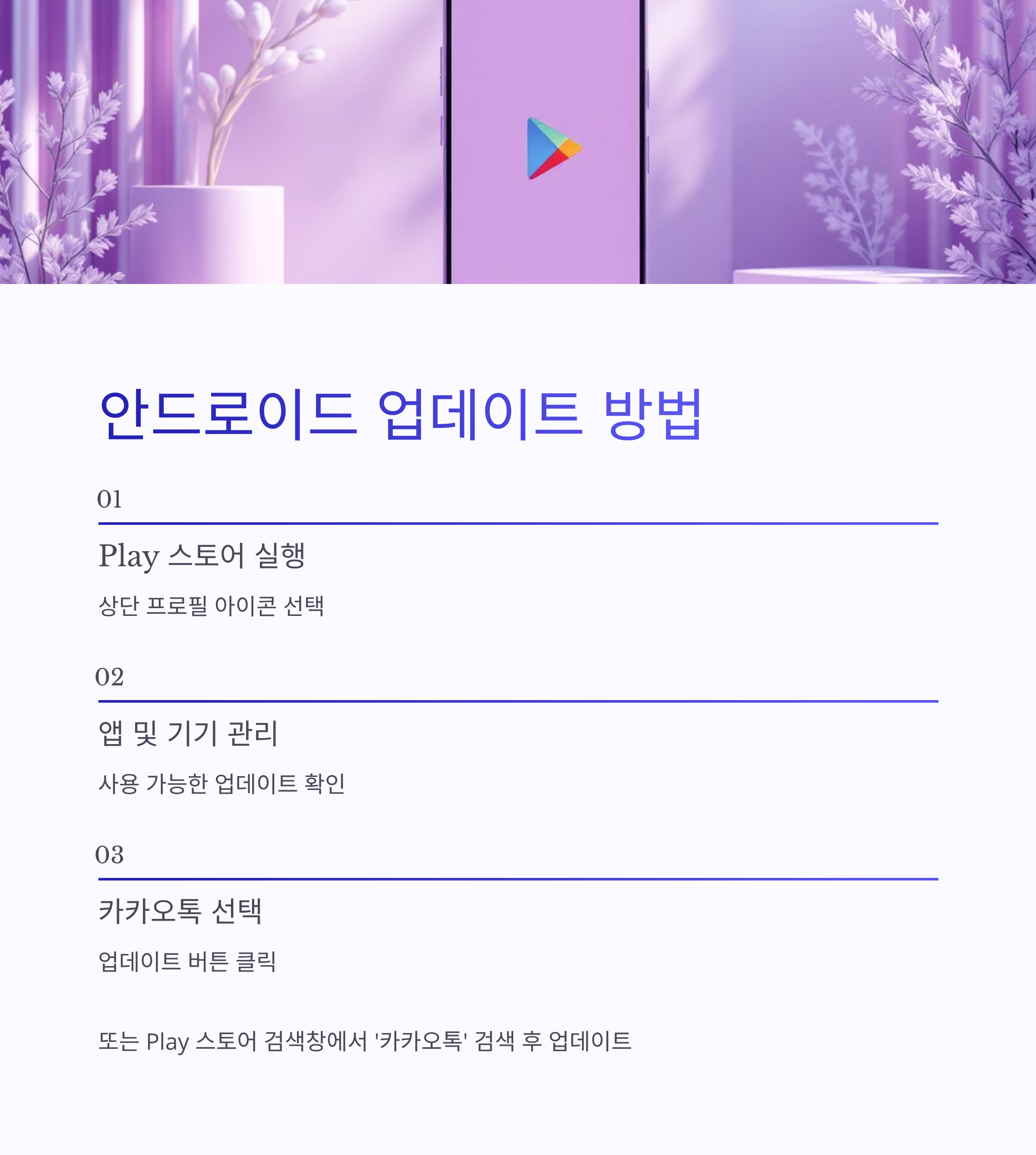 Play 스토어 검색창에서 ‘카카오톡’ 검색 → 앱 상세 화면 → 업데이트