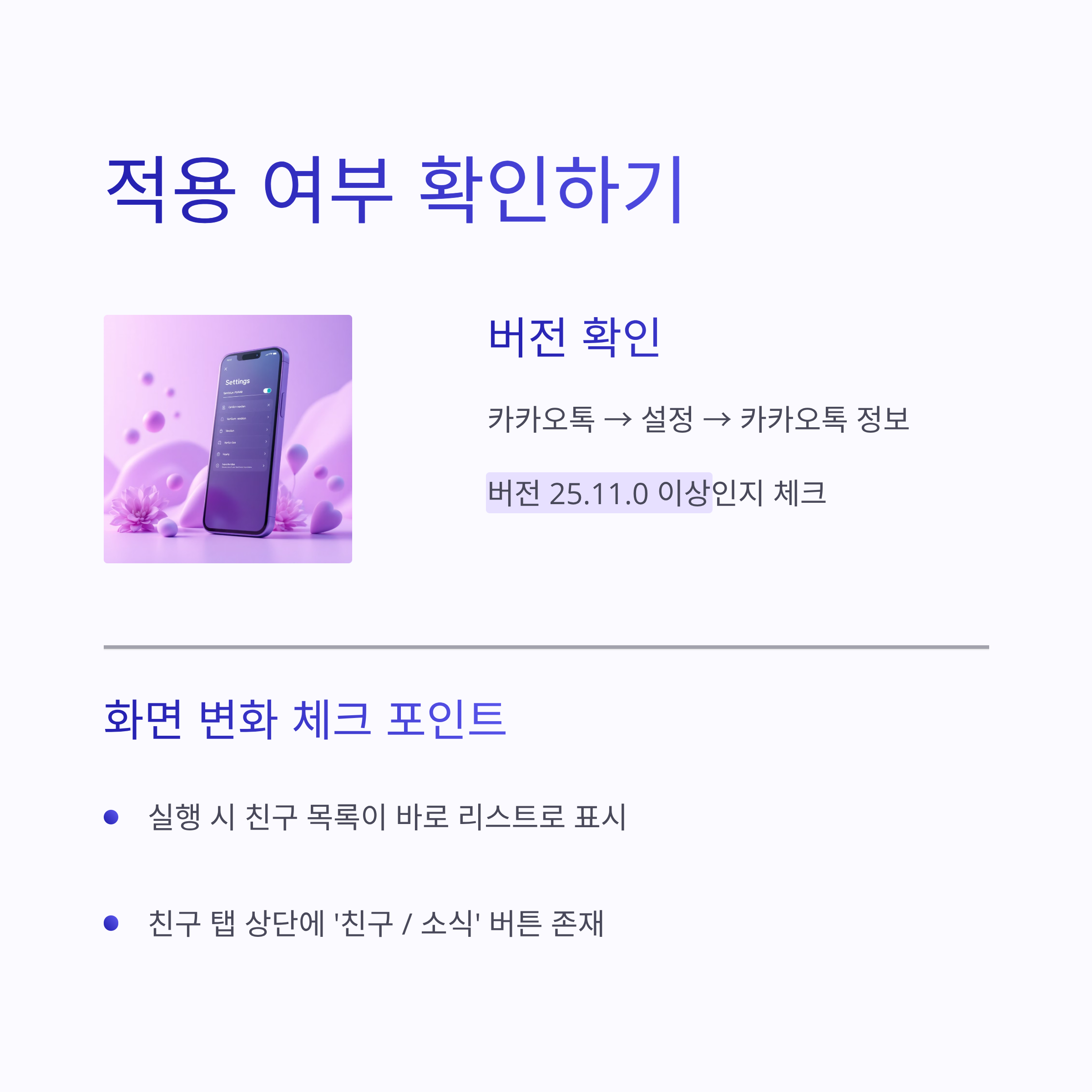 - 친구 탭 상단에 ‘친구 / 소식’ 버튼이 있는지