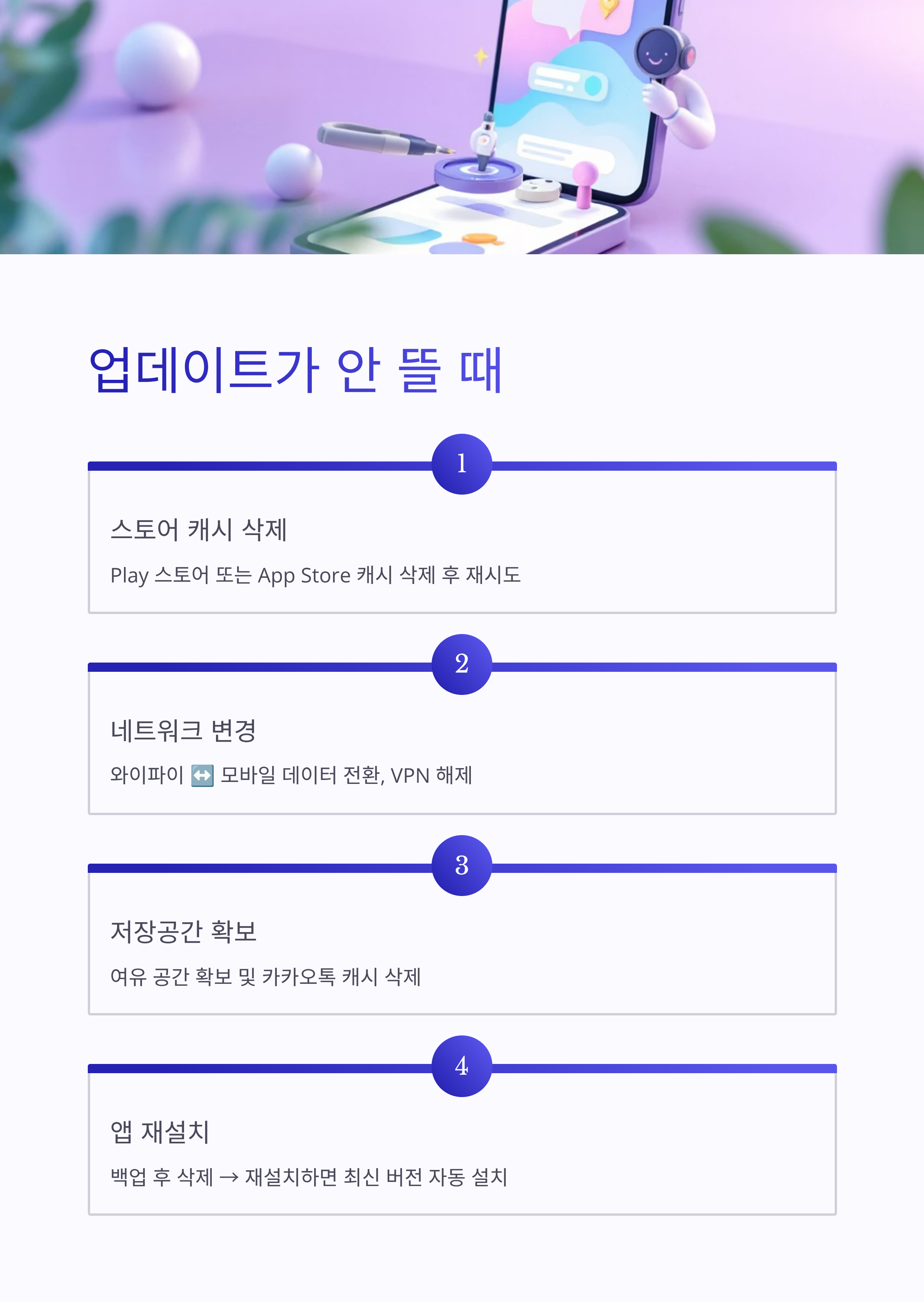 - 와이파이 또는 모바일 데이터 변경 후 재시도