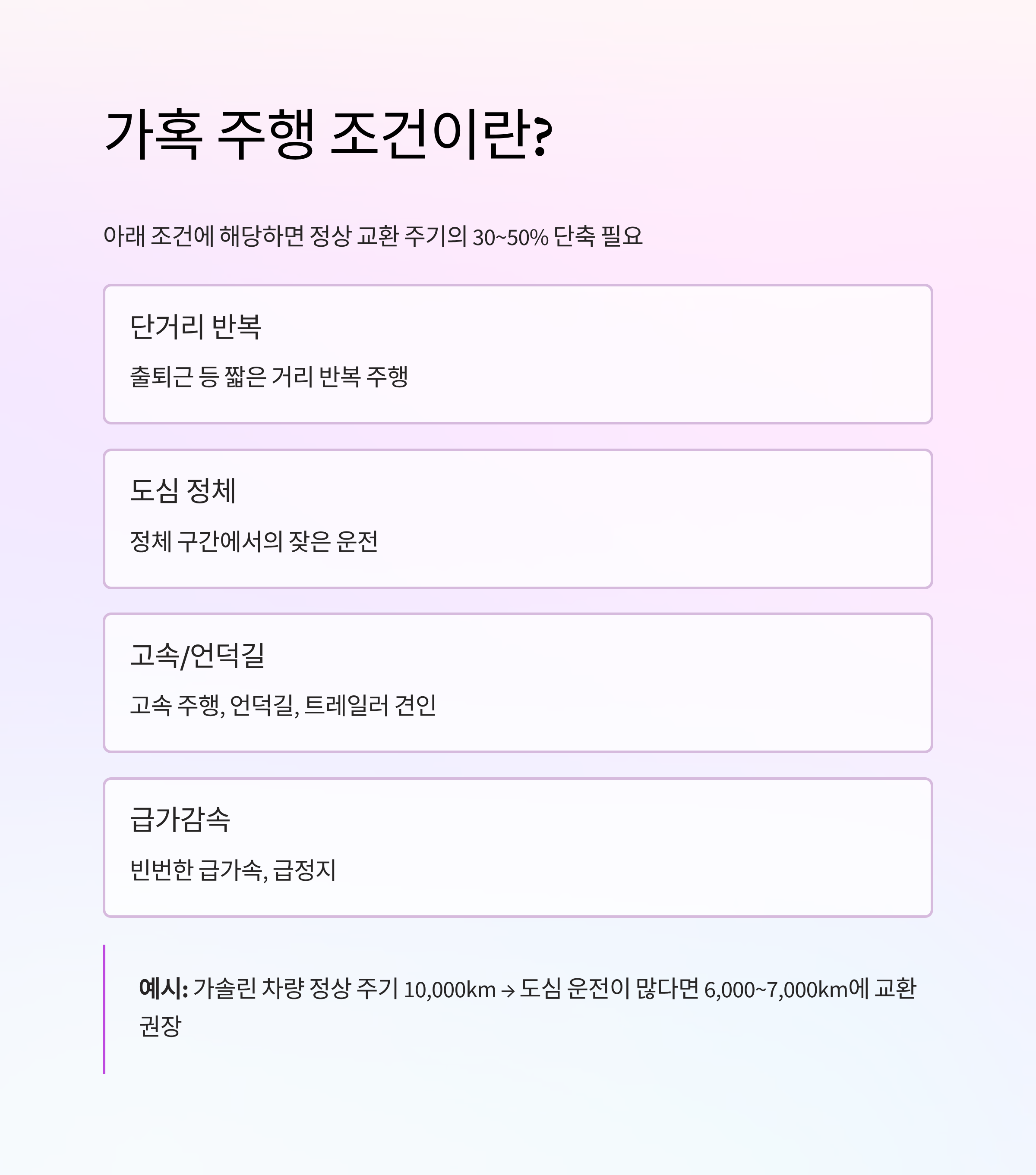 4. 가혹 주행 조건이면 더 자주 갈아야 하나요?