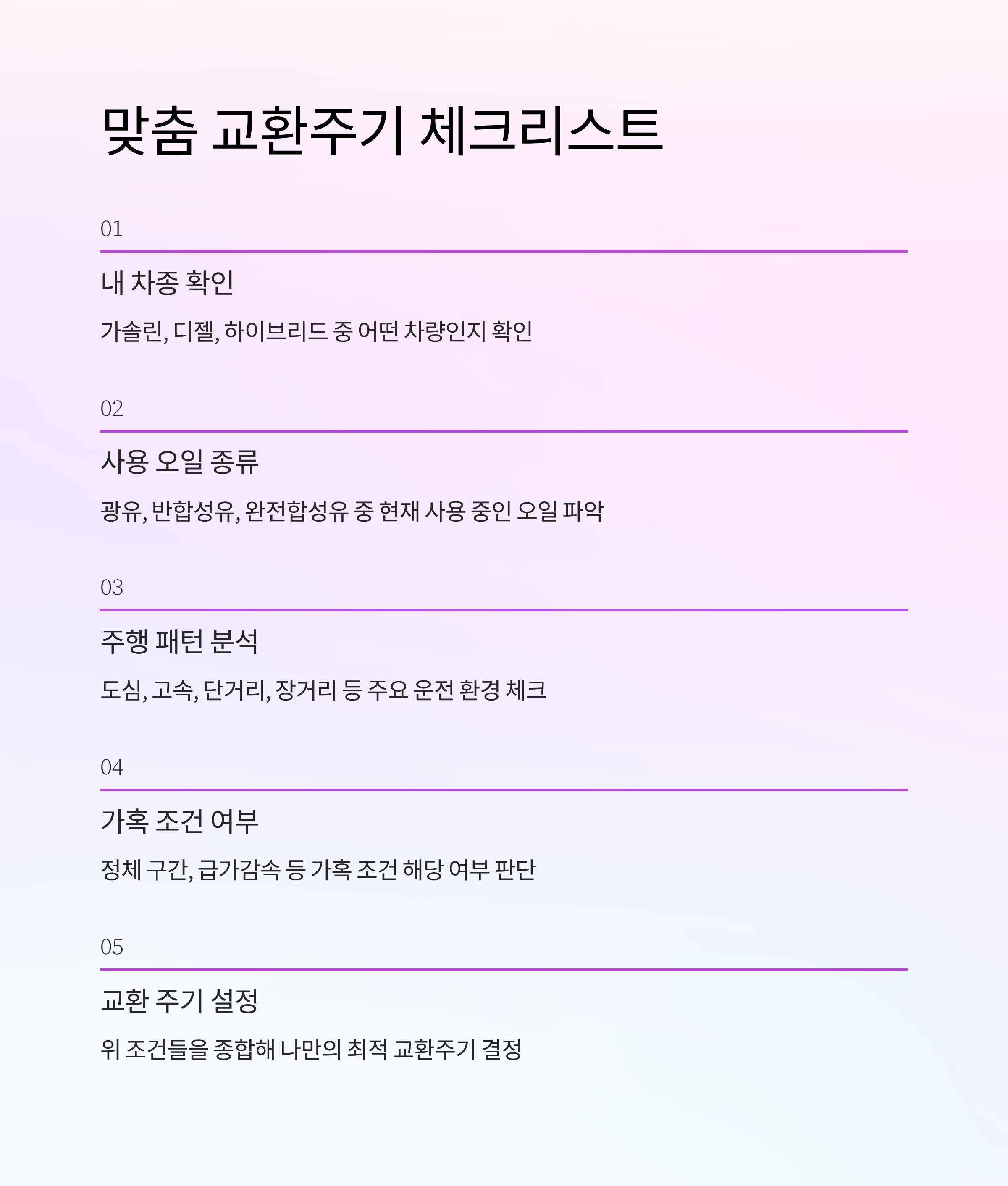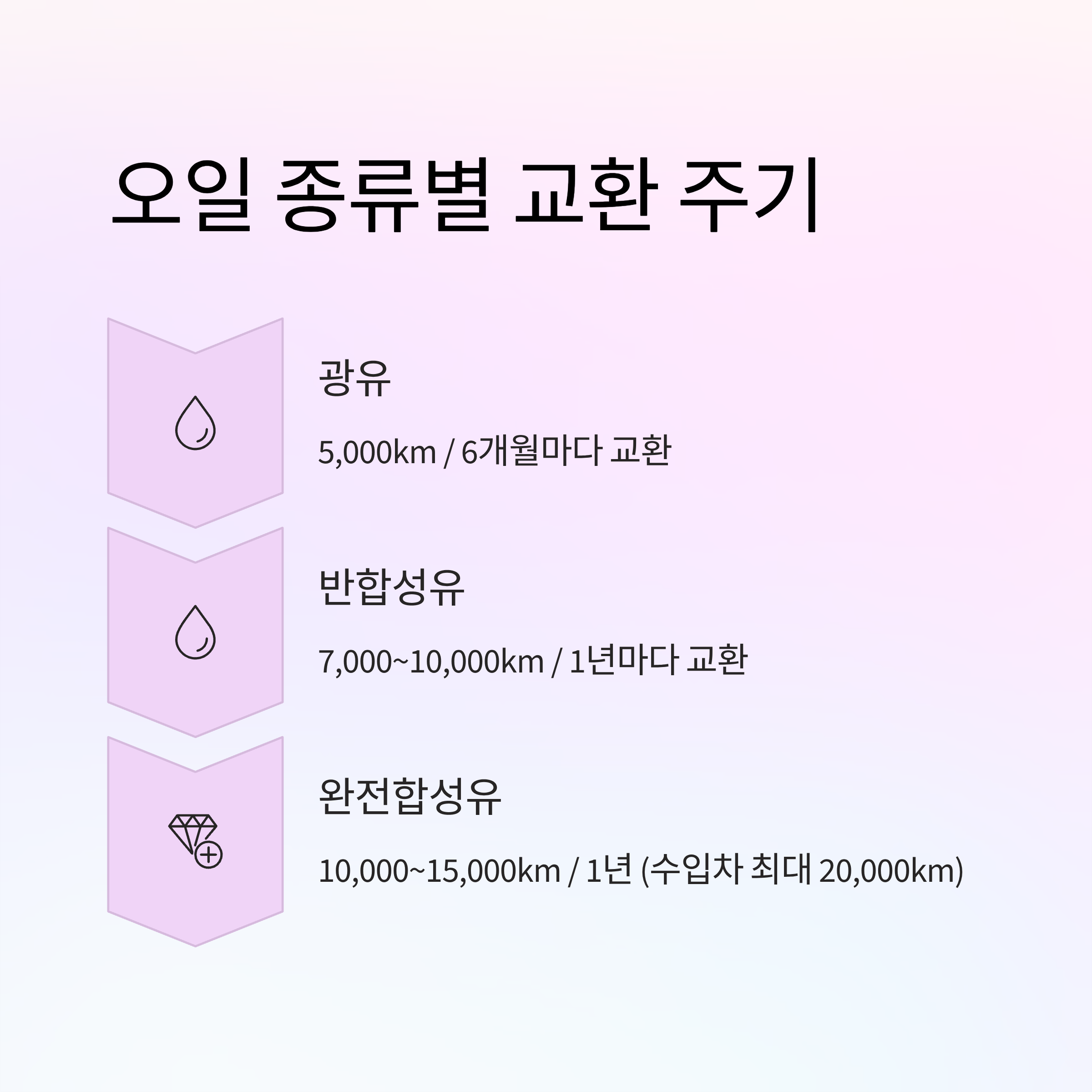 차종, 오일 종류, 주행 패턴을 고려해 맞춤 주기를 정하고,