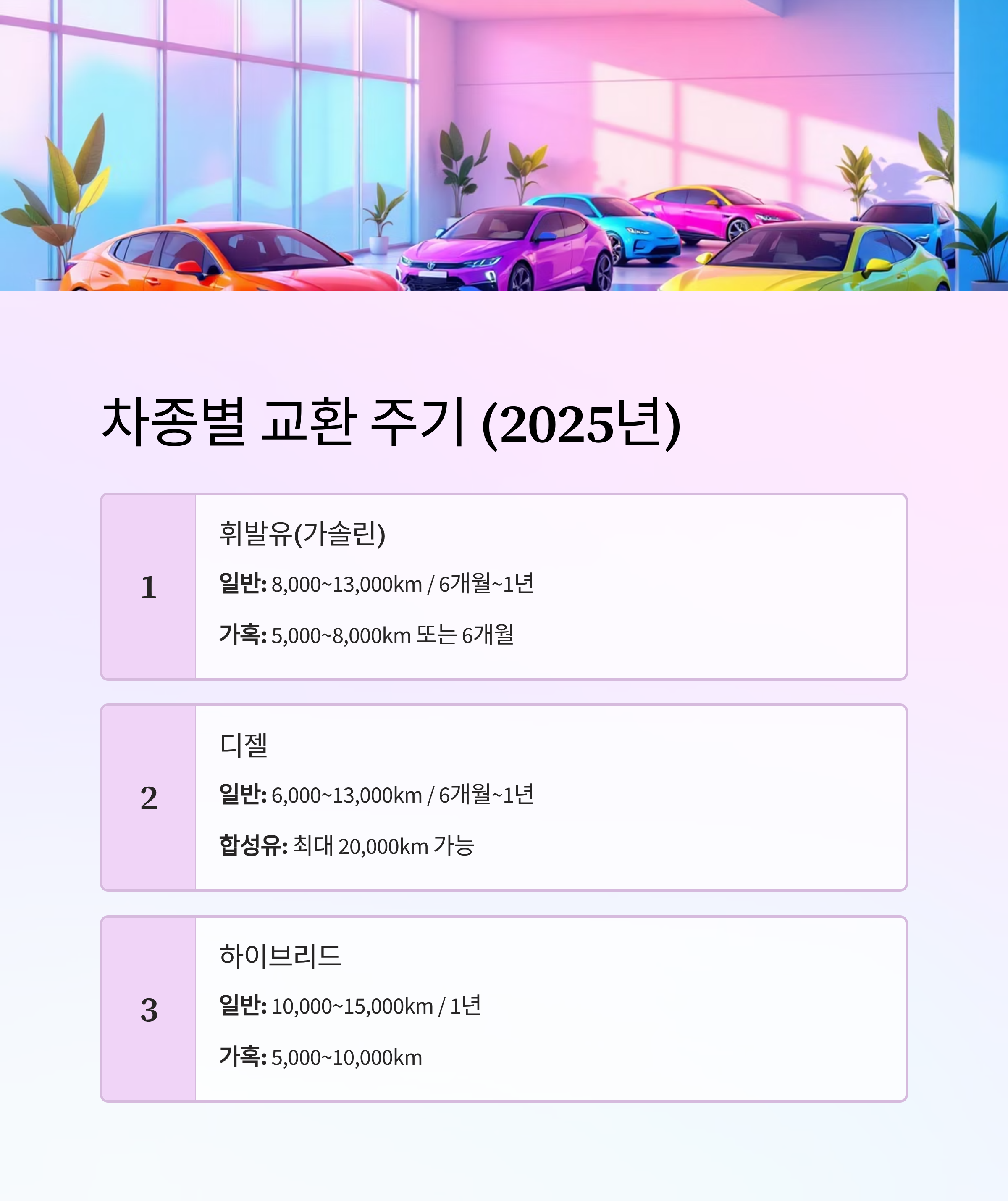 2. 차종별 엔진오일 교환 주기 정리 (2025년 기준)
