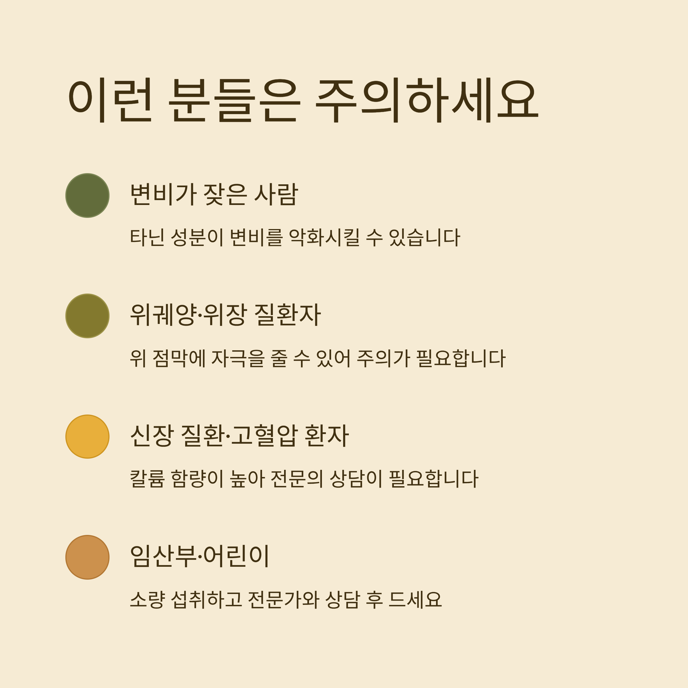 - 임산부·어린이 (소량 섭취, 상담 권장)