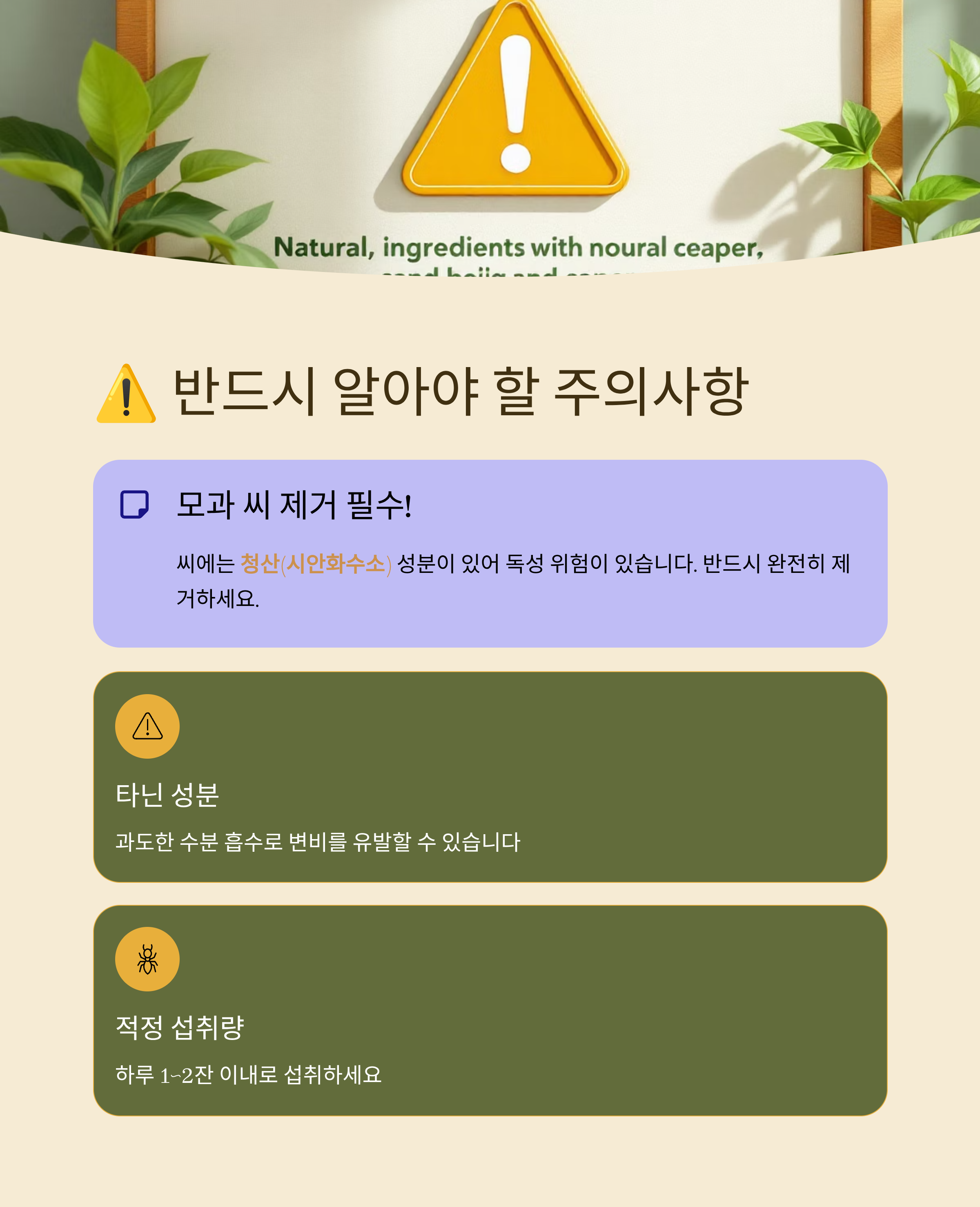 | 주의사항 | 씨 제거 필수, 과다 섭취 금지 |