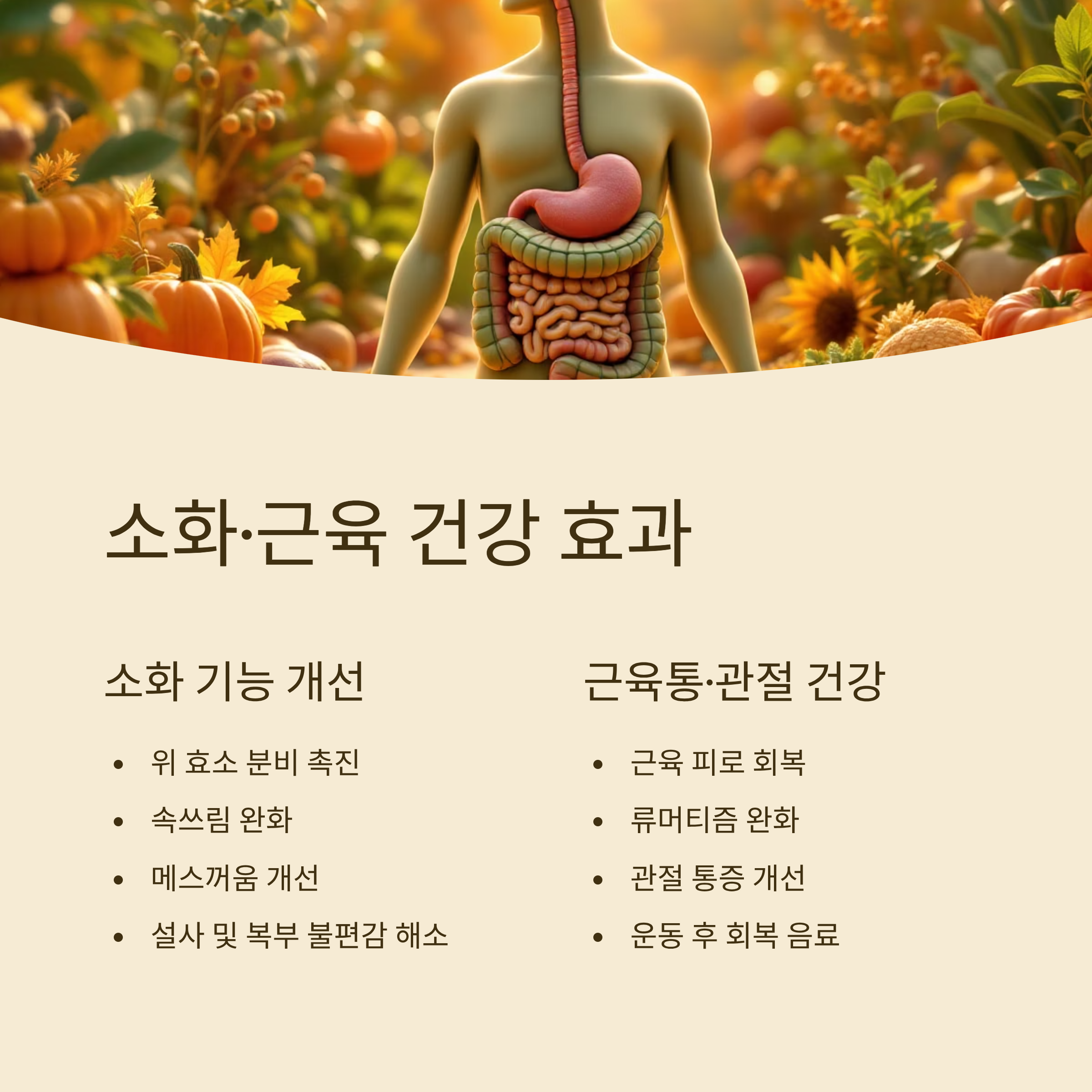 | 주요 효능 | 기관지, 소화, 근육통 완화 |