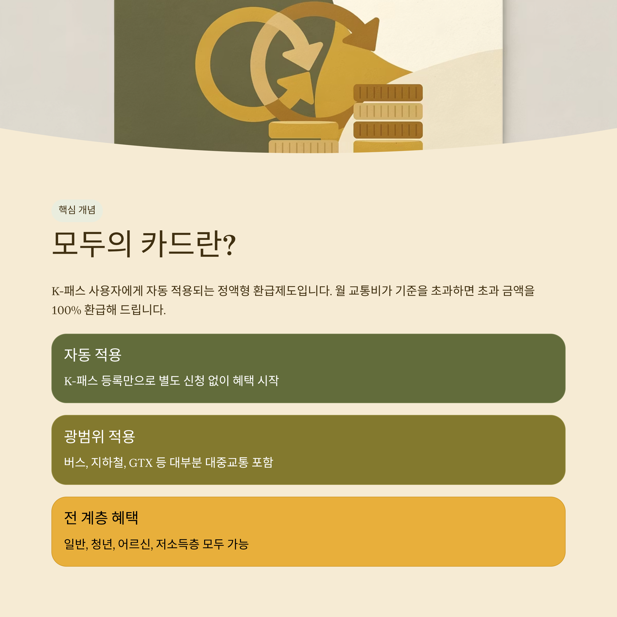 - 매월 시스템이 "기존 K-패스 환급" vs "모두의 카드 정액환급" 중 더 유리한 방식 자동 적용