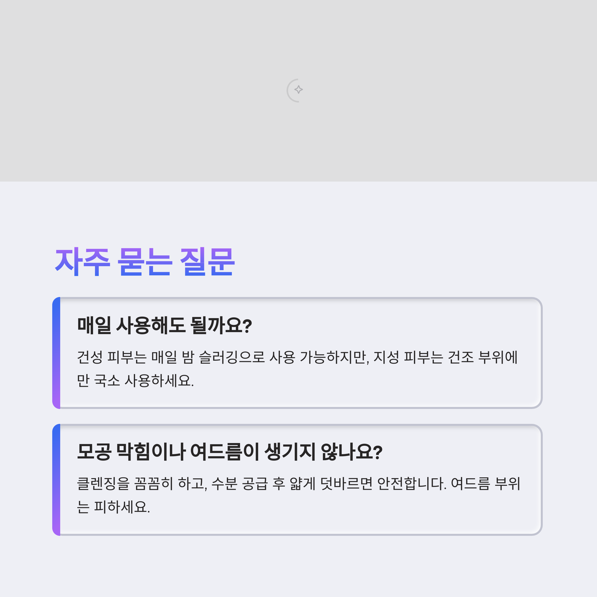 - 피부 타입별 팁: 건성은 전체, 지성은 국소, 민감은 소량 테스트 필수