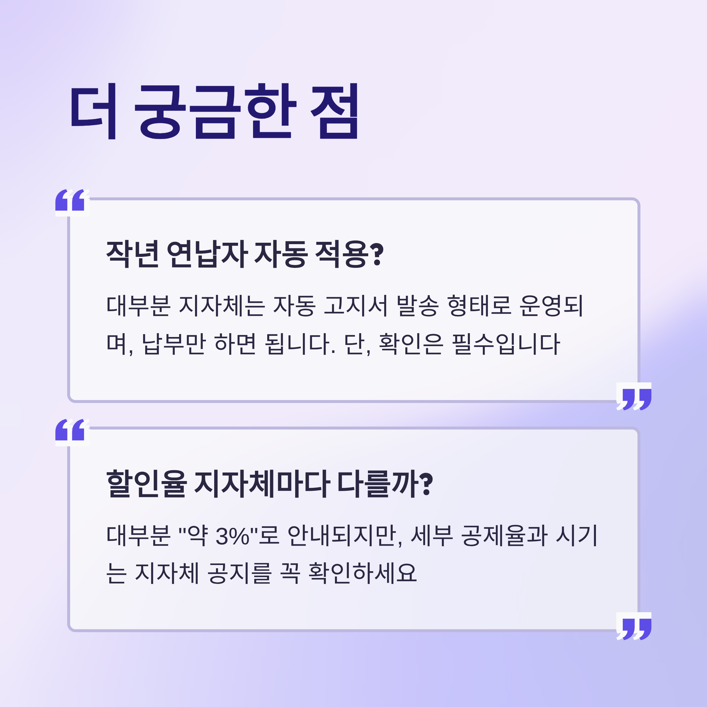 A. 대부분 “약 3%”로 안내되지만, 세부 공제율과 시기는 지자체 공지를 꼭 확인하세요.