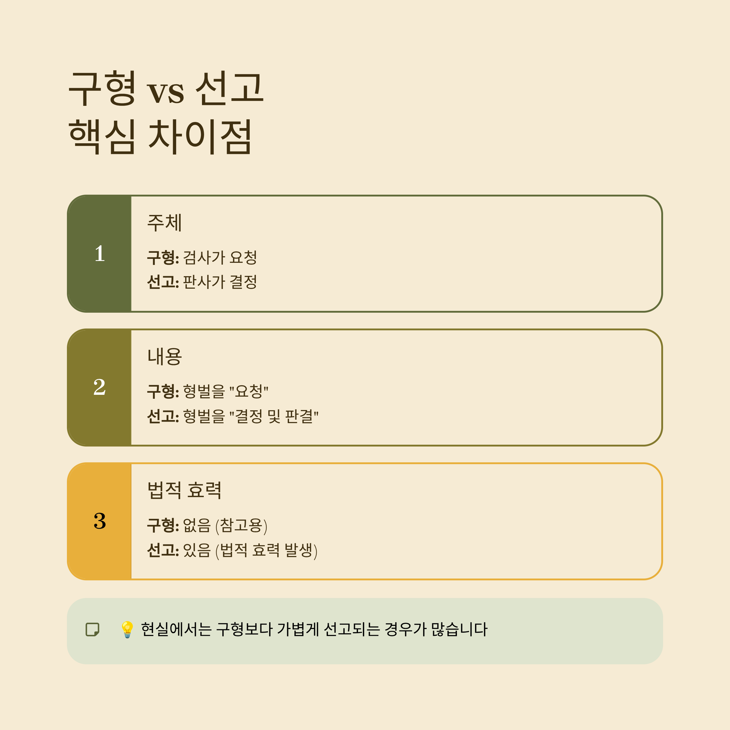 | 현실 사례 | 구형보다 가볍게 선고되는 경우 많음 | 구형을 참고하되 독립적으로 판단함 |