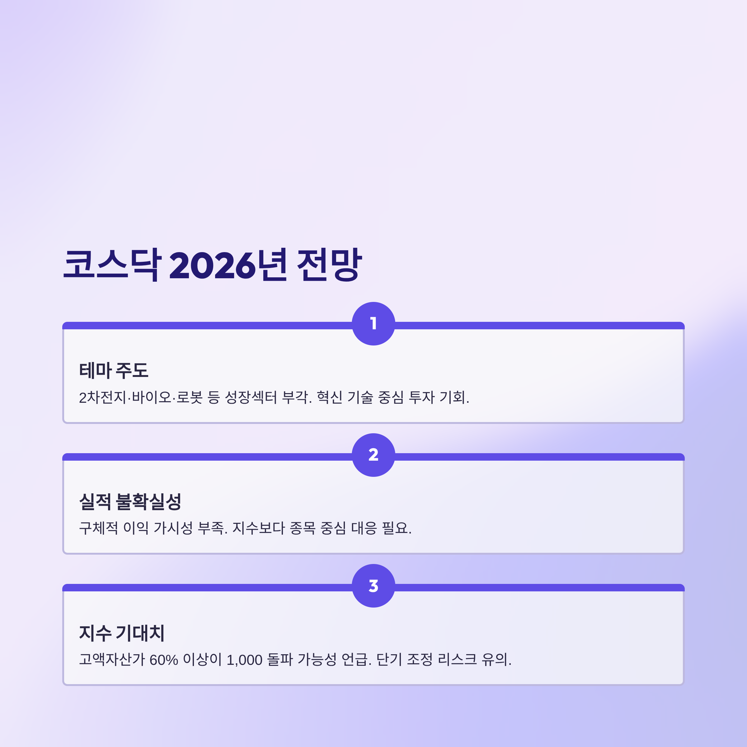 - 주의사항: 코스닥 레버리지/신용투자 비중은 낮추고, 종목별 실적 체크 필수